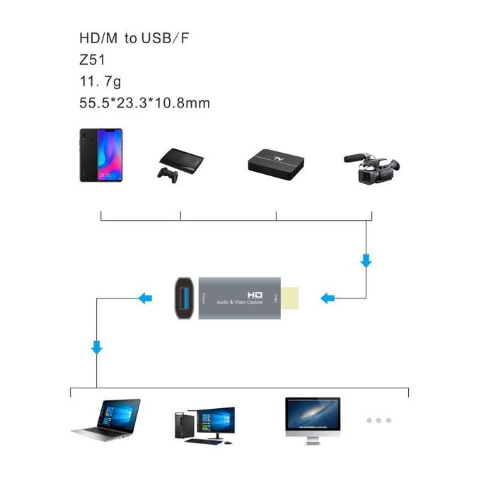 No external driver or power supply needed, the USB card is great for low-latency game, can meet the needs of live broadcasting, gaming, teaching, video conference