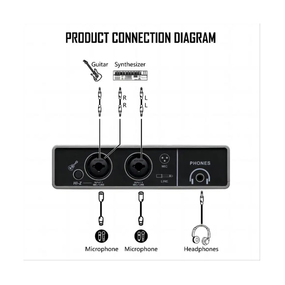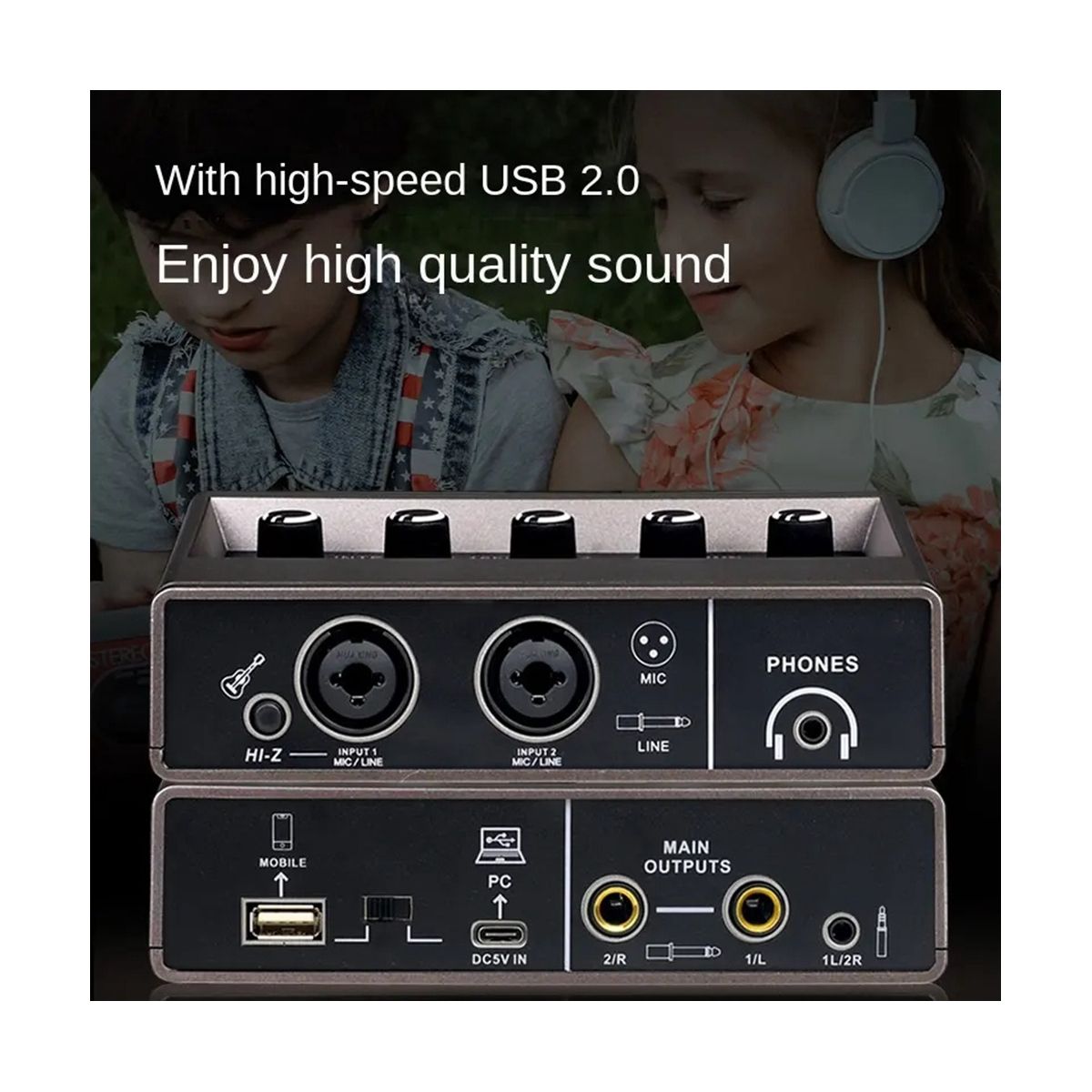 Professional recording sound card Universal for mo- bile phone and computer, Strong compatibility,simple and practical Recording K-song composer mixing post-levet audio interface Built-in professional DSP reverb effect