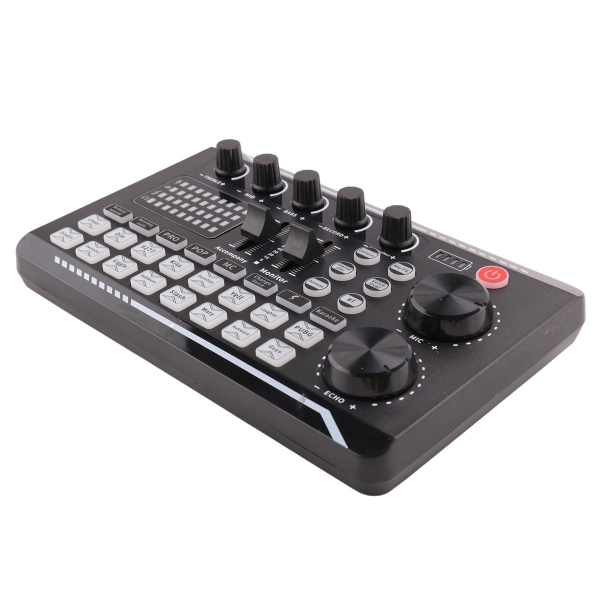Professional F988 Sound Card: It's the newest F988 Live Sound Card, with imported DSP dual chip, Bluetooth wireless accompaniment, double thruster precise adjustment, advanced intelligent light control. The console lights beating according to the music will make your concert full of excitement.