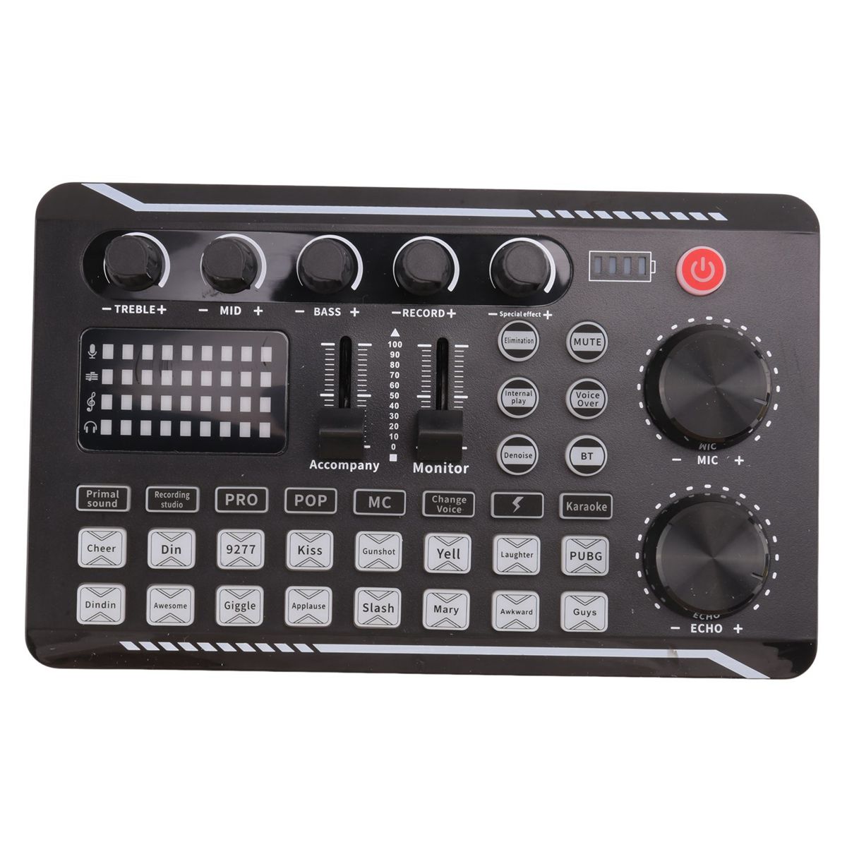 Detailed Information About The Product:Professional Audio Mixer: The newly designed sound card almost contains the functions commonly used in podcasting --16 kinds of fixed background special effects sound, 7 kinds of podcast & recording modes, 4 kinds of Voice changer modes, 4 kinds of special functions (Elimination/ Denoise/ Voice Over/ Internal Play), add more fun to your podcasting and live to stream. perfect for project/home-studio applications.