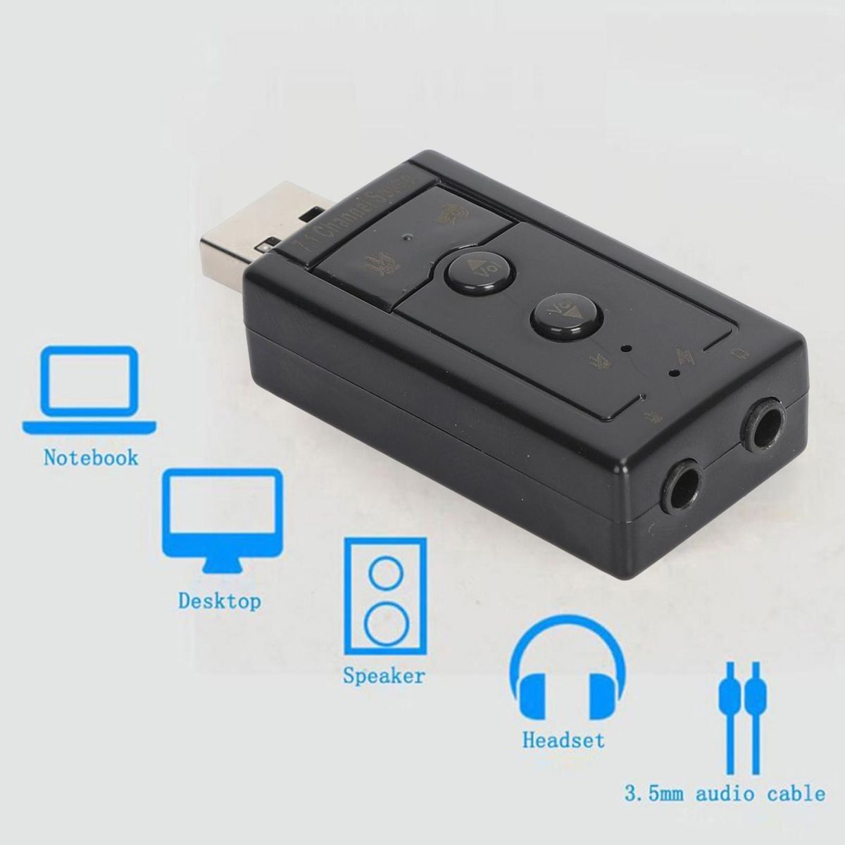 This sound card is suitable for laptop, desktop, speaker, headphone and so on. It is compatible for Windows 2000/XP, for Windows 7/8.