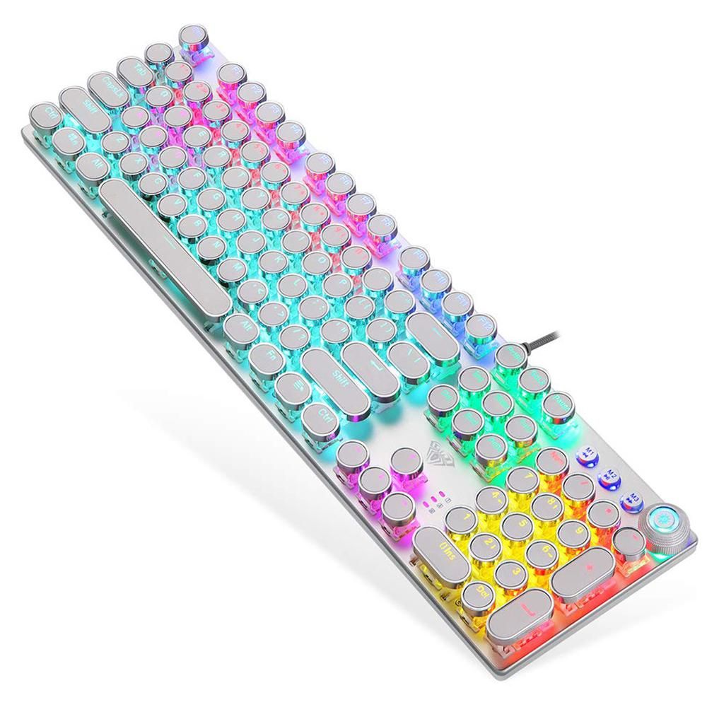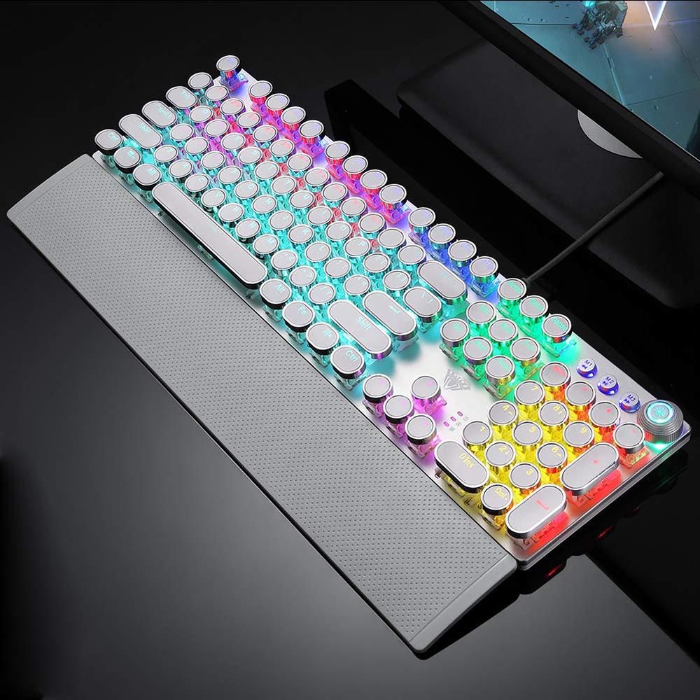 Buy AULA F2088 104 Keys Wired Gaming Mechanical Punk Round Keyboard Mixed Light Effect Metal Panel with Wrist Pad White(Blue Switches) in Nigeria