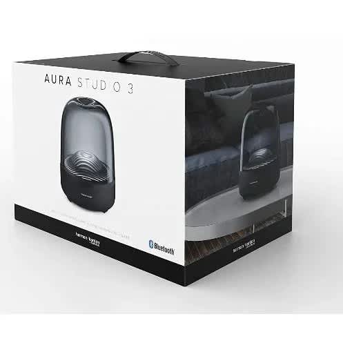 Elevate your home with the timeless, iconic design of the Harman Kardon Aura Studio 3 for 360 degrees of beautiful sound. A stunning Bluetooth speaker that looks as good as it sounds. It pairs room-filling audio with integrated ambient light effects, a water wave ripple movement to experience your music in a new, visually dynamic way. With a domed design as understated as its small footprint, this piece blends in beautifully with your décor, in any room of your home