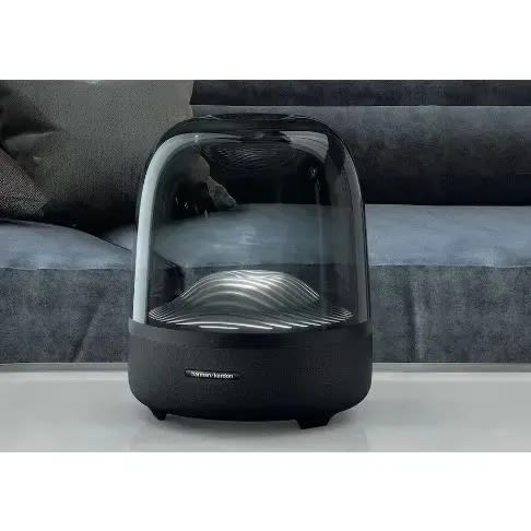 Elevate your home with the timeless, iconic design of the Harman Kardon Aura Studio 3 for 360 degrees of beautiful sound. A stunning Bluetooth speaker that looks as good as it sounds. It pairs room-filling audio with integrated ambient light effects, a water wave ripple movement to experience your music in a new, visually dynamic way. With a domed design as understated as its small footprint, this piece blends in beautifully with your décor, in any room of your home