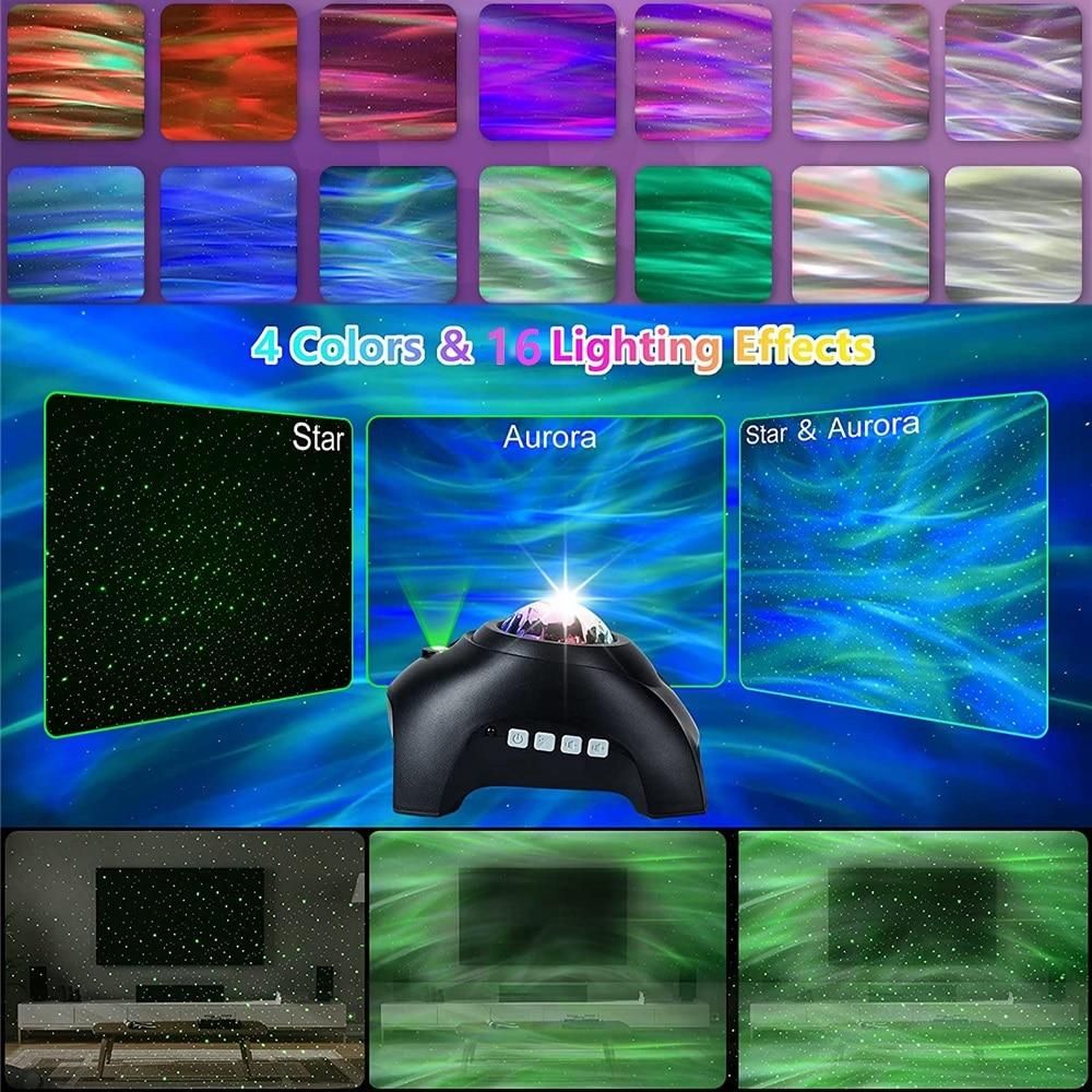 [Star & Flowing Aurora Combination Projector]:16 lighting effects Combining the aurora light. Home Travel to the realistic Northern Lights. 360° rotational dynamic projections, and breathtaking shooting stars.