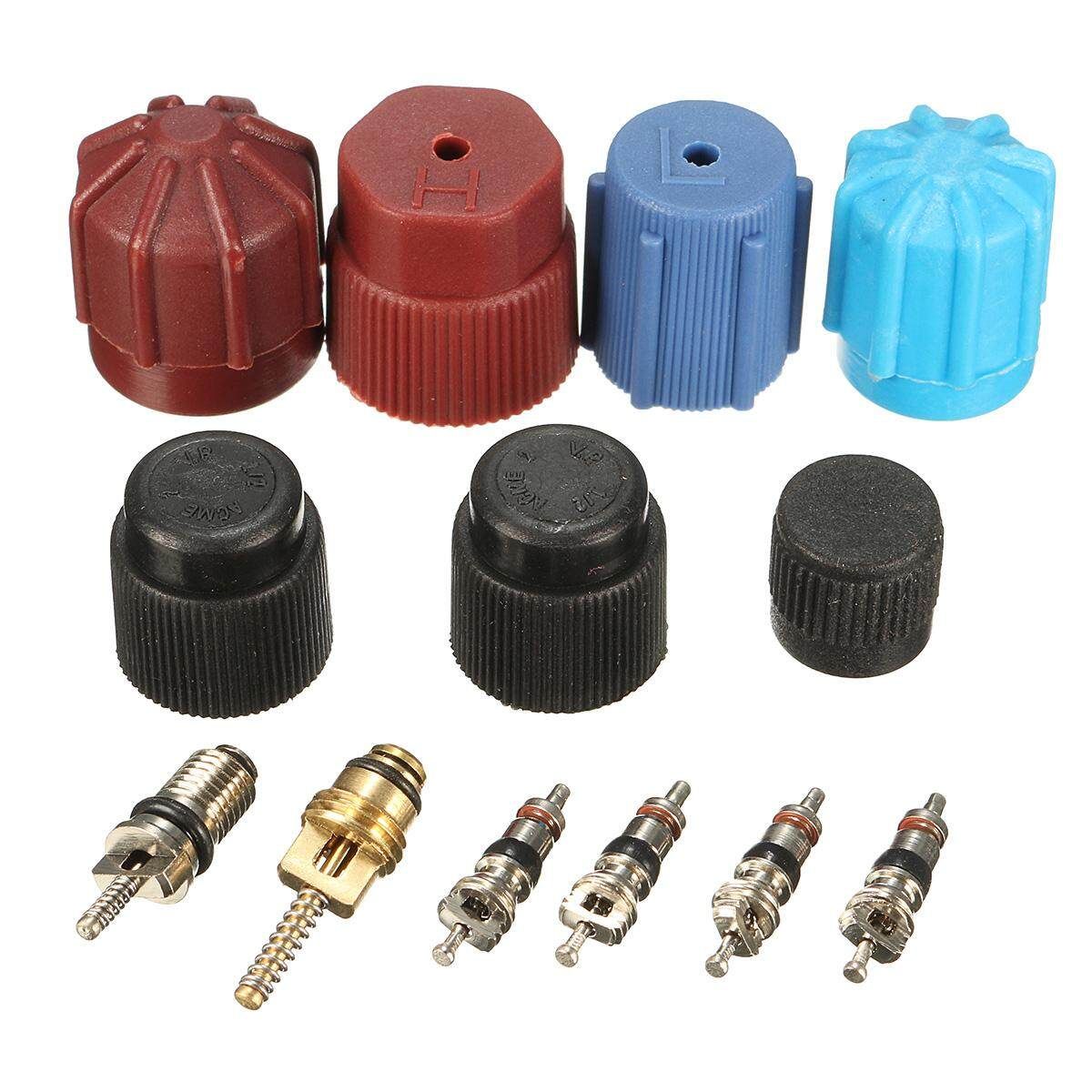 Auto Air Conditioner Refrigerant Valve Cores Caps 134a High Low Cover