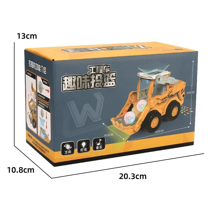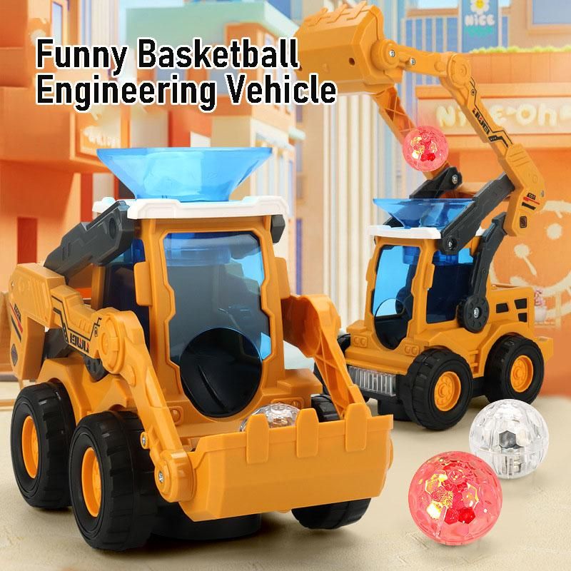 1X Auto-Basketball Engineering Car 360° Rotating Electric Pitch Ball Construction Vehicle Excavator Model Toy Lights Music Kid Gift