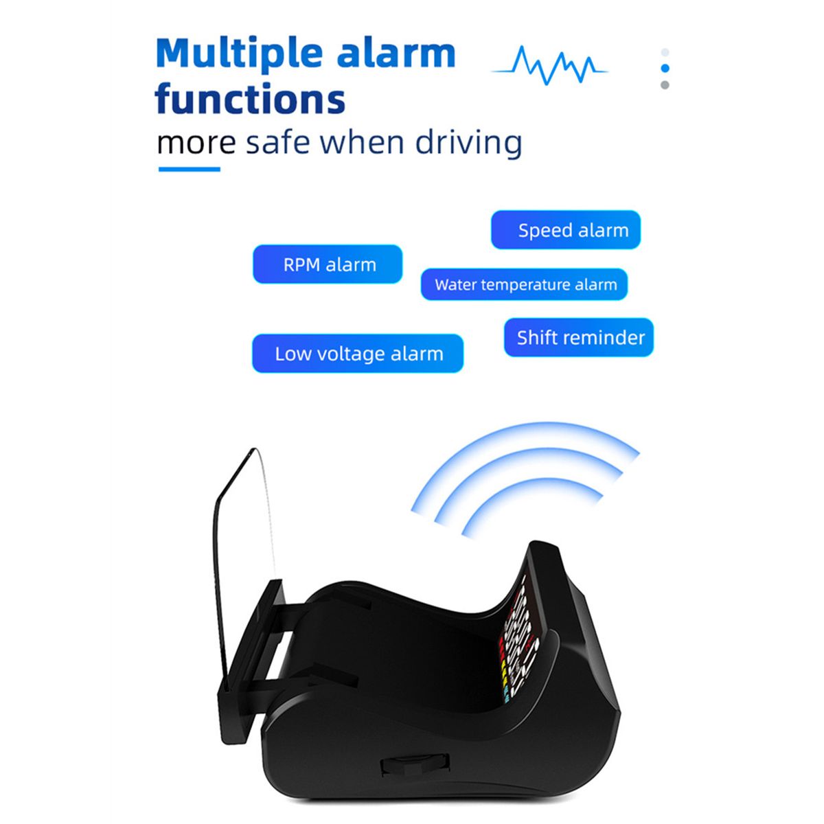 It offers RPM, speed, high water temp, low voltage alarm and shift reminder, helping you avoid accidents and keeping safe driving.