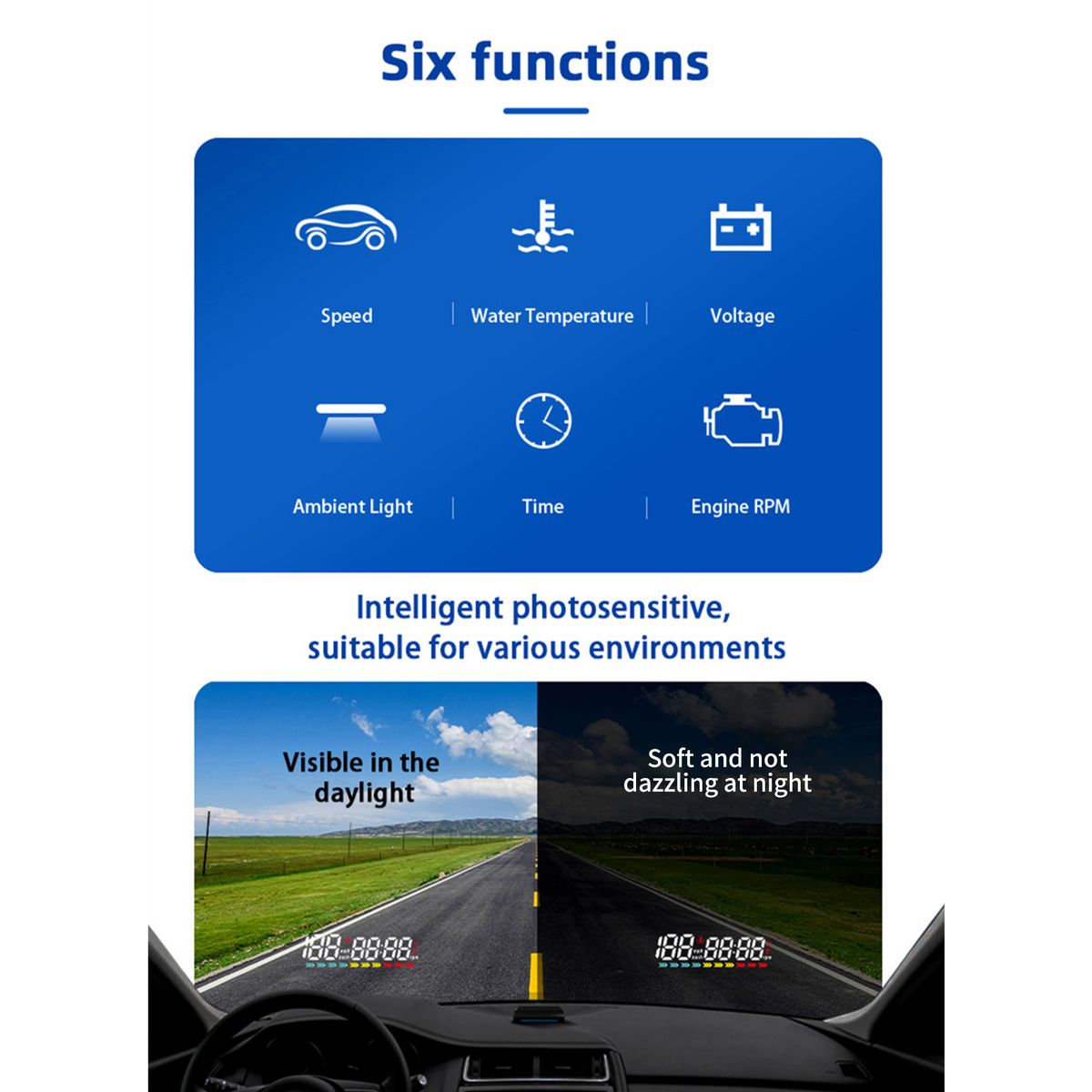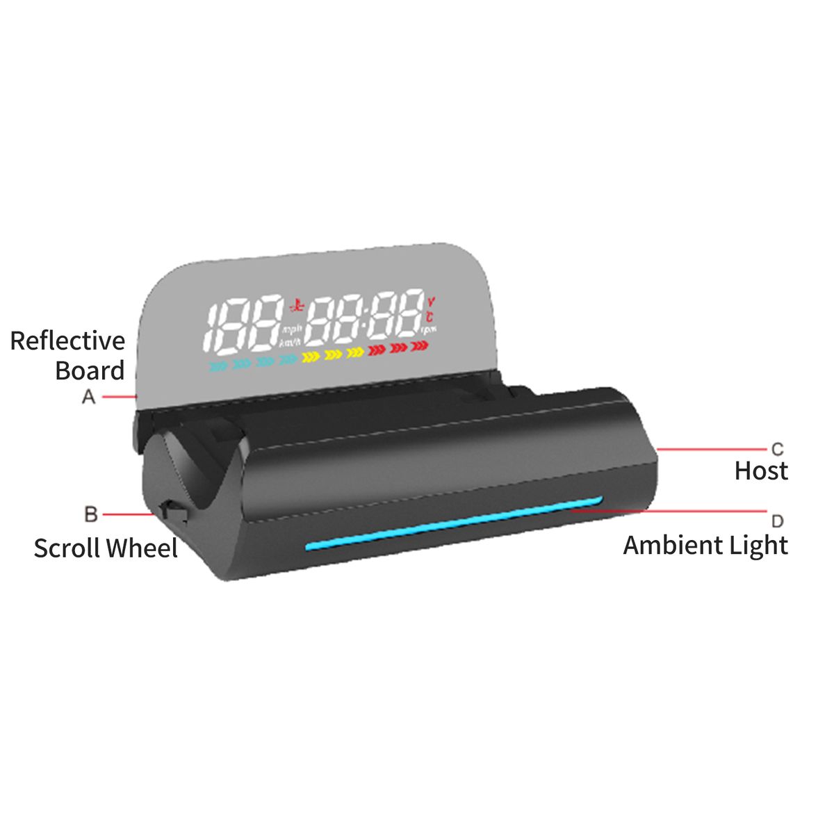 It displays driving data on the front windshield such as speed, RPM, etc. to avoid the danger of drivers looking down at the dashboard. offering a safer driving experience.