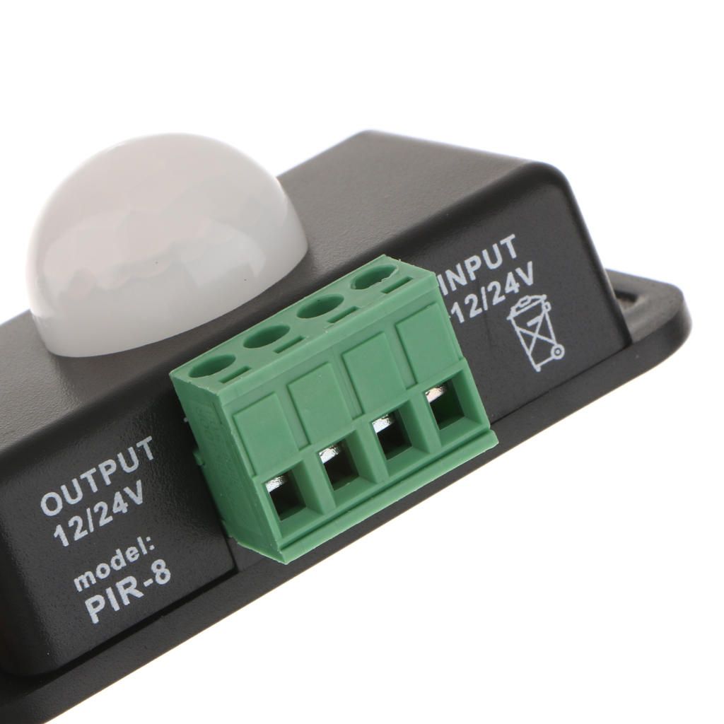 Compatible DC 12V-24V PIR sensor switches adopting infrared detection way to control load switch.
