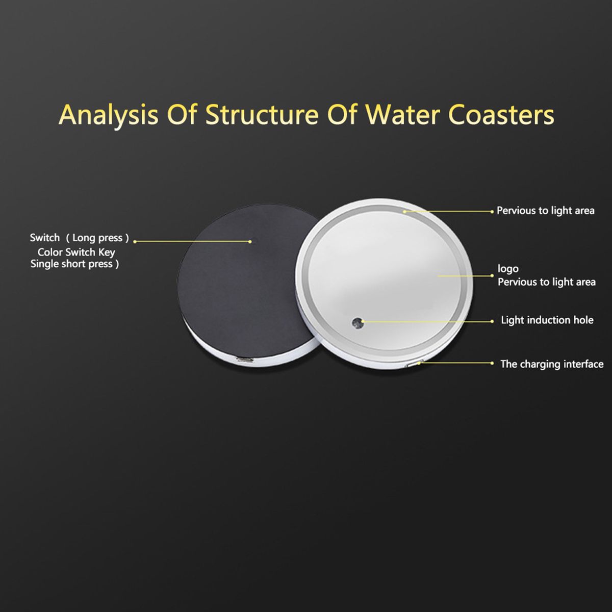 Auto cup mat, multicolor lighting modes, shake induction, intelligent transform light color, USB charge, energy saving, long service time. No wire needs, easy to install and remove. Acrylic panel, lightweight, waterproof, easy to clear.