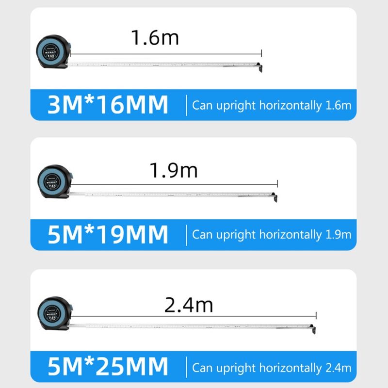 Features: There are 5 types, 3x19mm, 5x19mm, 5x25mm, 7.5x25mm, 10x25mm, 3/5/7.5/10 meters separately. Auto-locking design allows blade to be retracted smoothly,retractable Metric Ruler makes this tape measure perfect. Durable blade coating and riveted end hook to improve product life. Black size pattern on white background design is easy to read. Ideal for daily ge-neral tape measurement work. Specifications: Material: Stainle Steel Size: 3/5/7.5/10 meters, 9.8/16/24.6/32.8 Ft Note: Please allow 1-3cm error due to manual measurement. pls make sure you do not mind before you bid. Due to the difference between different monitors, the picture may not reflect the actual color of the item. Package Includes: 1x Tape Measure