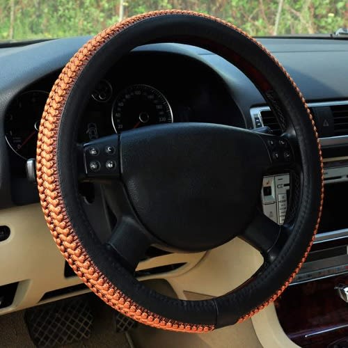 This cover uses high quality Leatherette to protect your steering wheel, bring you a great touch and feel, massage your palm and relieve drive fatigue, and colorful your driving experiences.