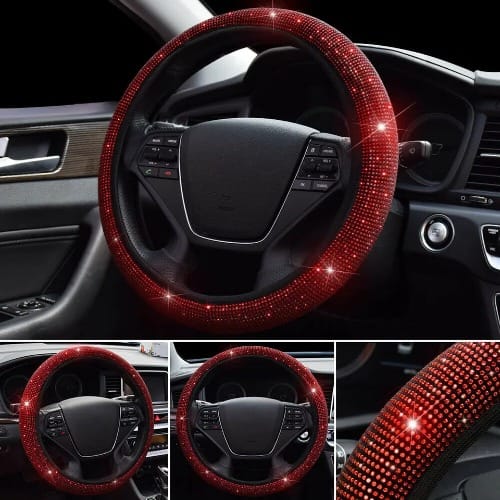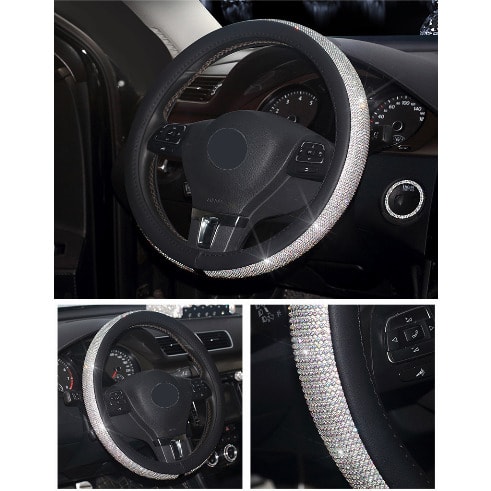 Our Diamond Steering wheel Cover is eco-friendly and healthy. PU leather with rhinestones blinks design adds fashion to your car interior, makes your car personalized. Top diamond craftwork, more stable and will not hurt your hands.