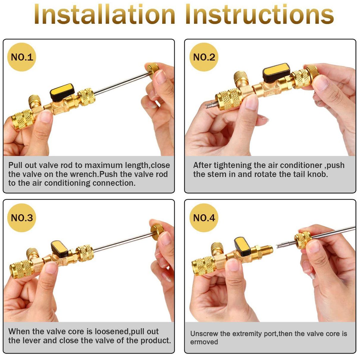 This tool easily inserts the inner valves core to control the core. No need to release coolant, easy to use.