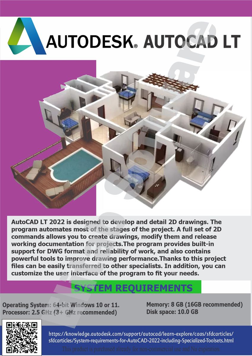 AutoCAD LT is designed for the development and detailing of 2D drawings. The program automates most of the stages of a project. A complete set of 2D commands allows you to create drawings, modify them and release working documentation for projects. The program provides built-in support for the DWG format and reliable operation, and also contains powerful tools to improve productivity in drafting. This allows project files to be easily transferred to other professionals. In addition, you can customize the program's user interface to suit your needs.