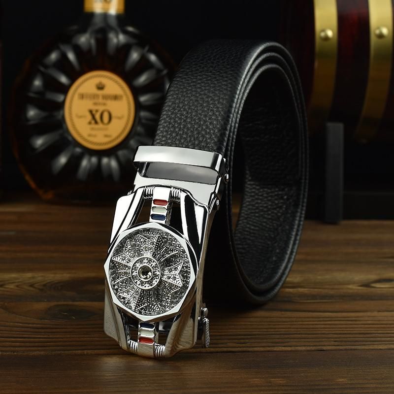 Buy Automatic Buckle Leather Belt Buckle Rhinestone Decoration Males Luxury Belt silver in Nigeria