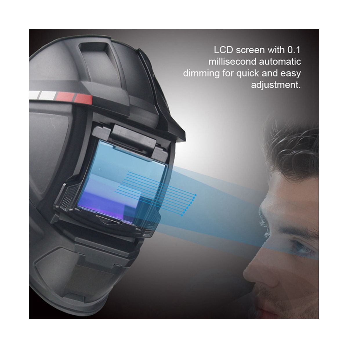 This welding mask is a fine quality protective equipment that uses automatic dimming technology to automatically adjust the light during welding protecting your eyes from strong light stimulation At the same time it can effectively prevents sparks and smoke from damaging your face making you safer and more comfortable at work This welding mask is an nice accessory in welding work and its fine quality and reliability will bring more convenience and safety to your work