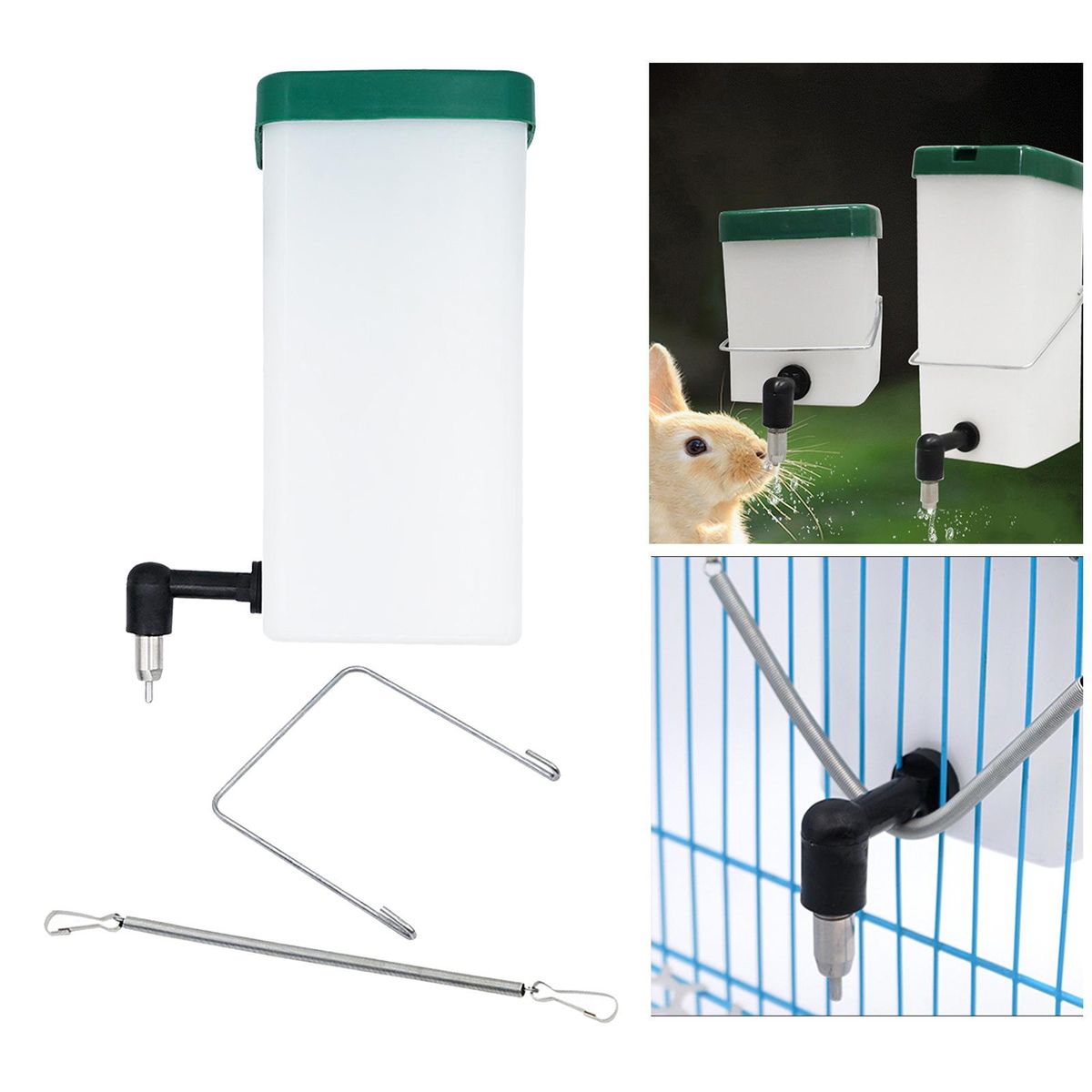 Stainless Steel Drinking : and , ready to use when touched, and convenient, does not hurt the rabbit's mouth. With spring and metal hook, easy to fix, you can the water bottle on the cage or put it directly in the cage for pets to use.