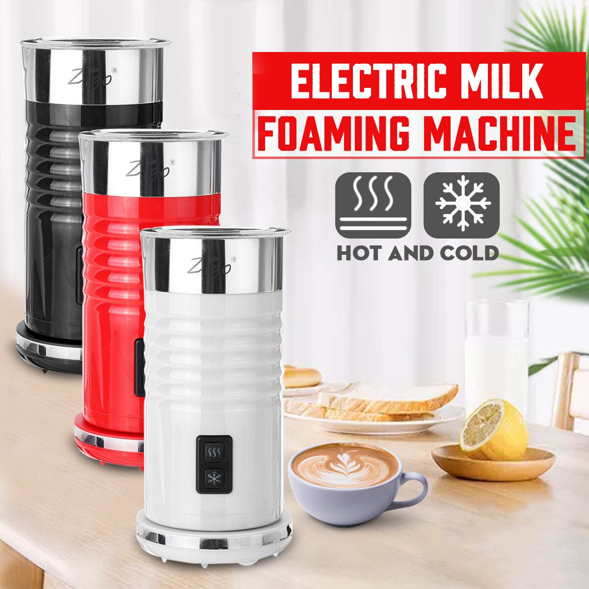 - Can make hot or cold milk froth for cappuccino or iced drinks, heats milk for latte and hot drinks.