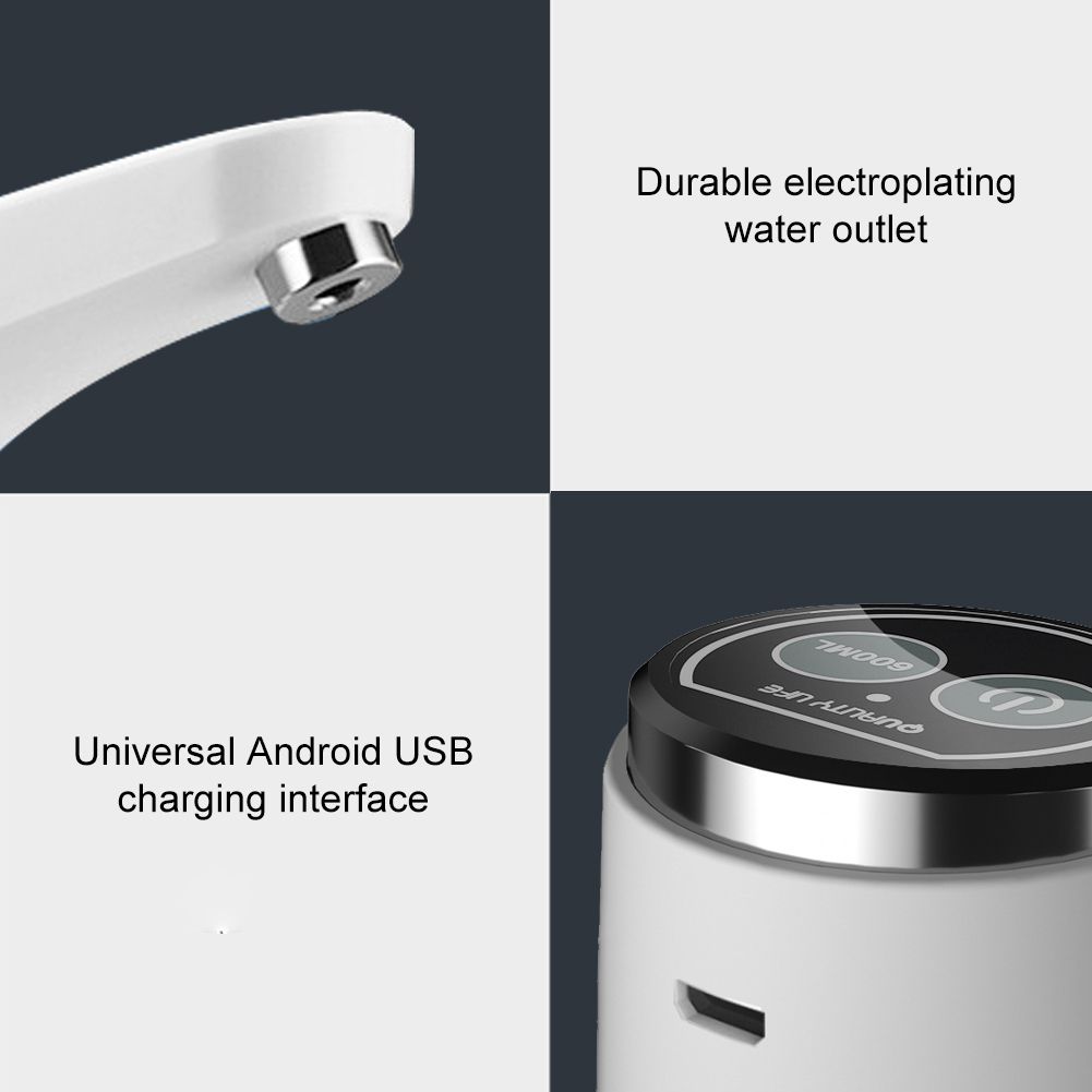 [LONG ENDURANCE] With built-in 1200MA high capacity rechargeable lithium battery, this water pump can be continuously used about 8 large barrels of water with just one charge, meeting a household's drinking needs for one to two months.