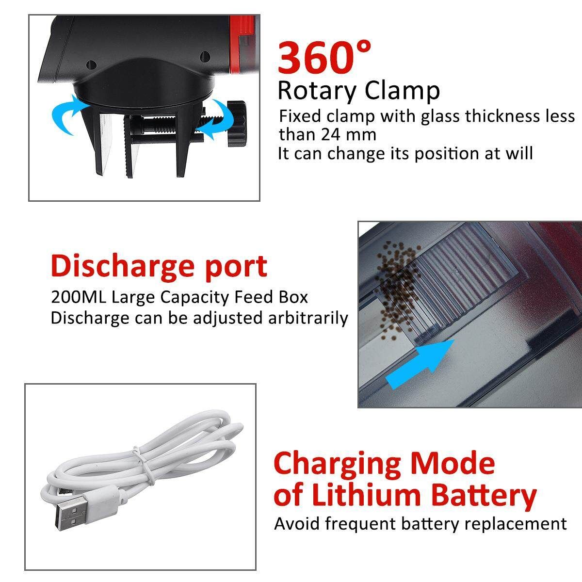 1.The feeder can't fall into the water 2.When the bat ery runs out of , please charge rt in time 3.Please allow 0.5-1 inch difference due to manual measurement. (1inch=2.54cm)