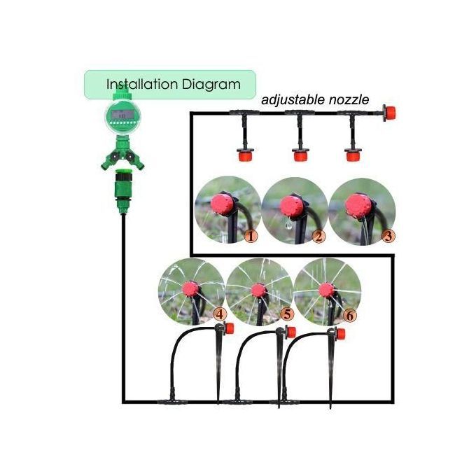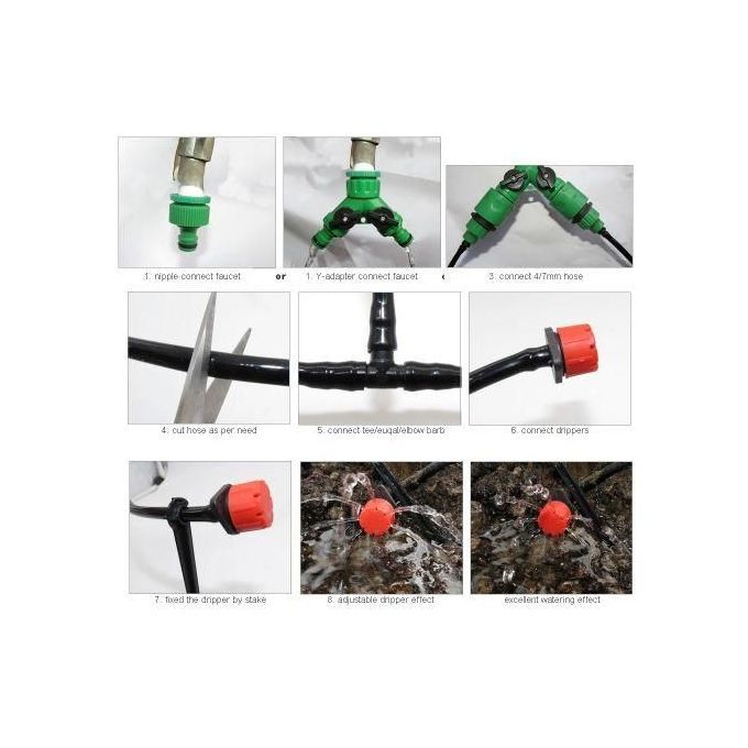 - A complate kit for watering flowers, trees, shurb, roses, vegetables, vines and more. Easy to assemble, this kit offers everything needed for a complete installation from a faucet, offering up to 70% in water savings.