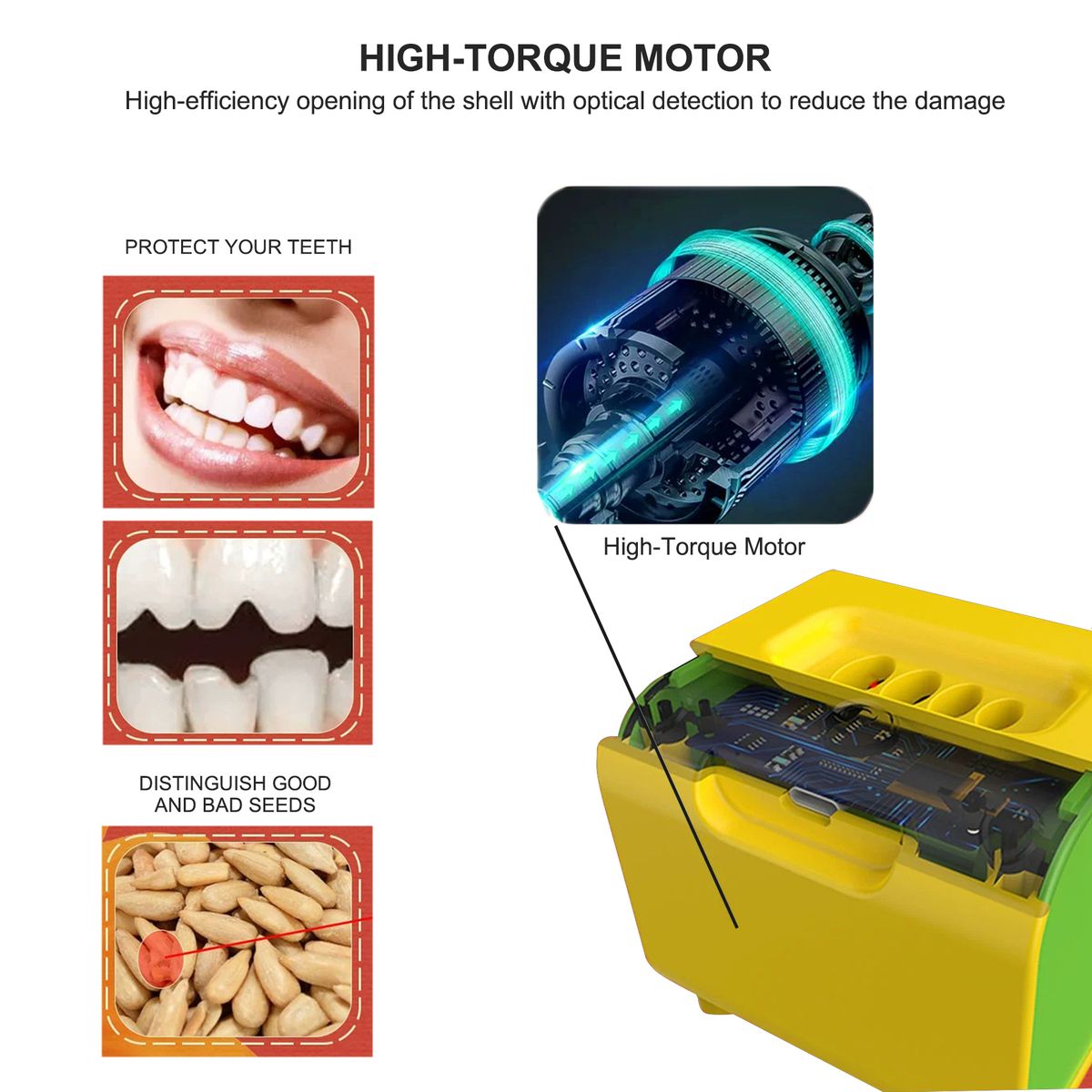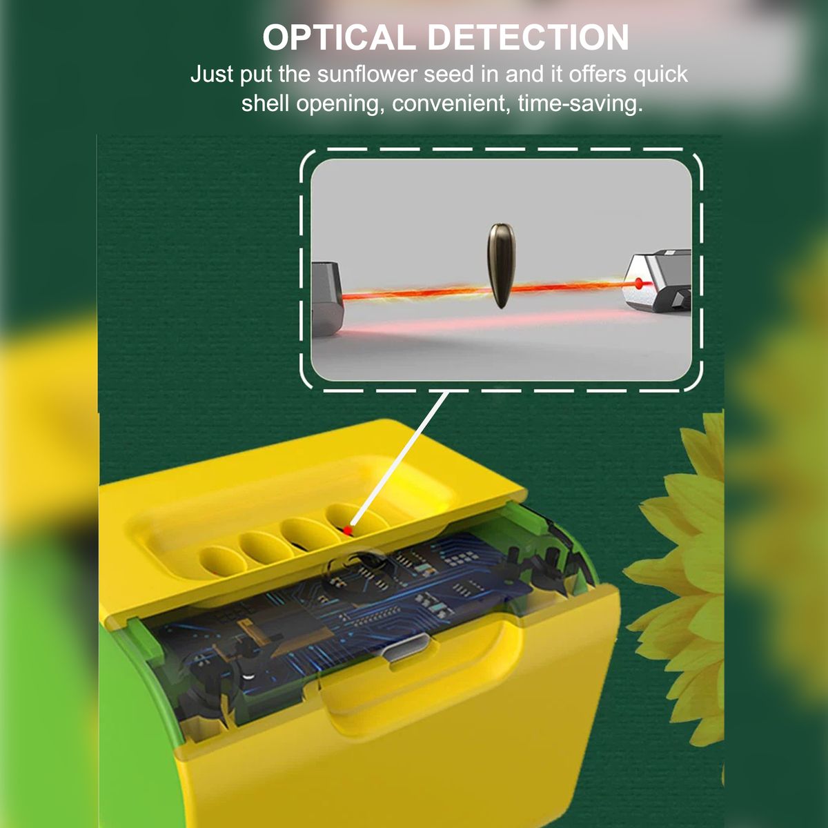 OPTICAL DETECTION TECHNOLOGY - Sensitive switch, high-torque motor, high-efficiency splitting of the seeds and reduce the damage. Just put the sunflower seed in and it offers quick splitting of the seeds, convenient, time-saving and labor saving.