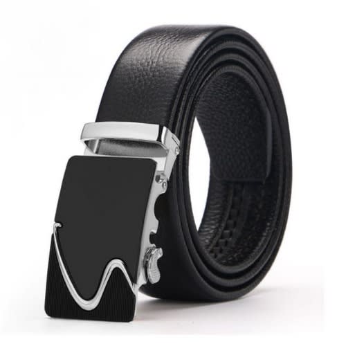 Buy Automatic Men Leather Belt - Black & Silver in Nigeria