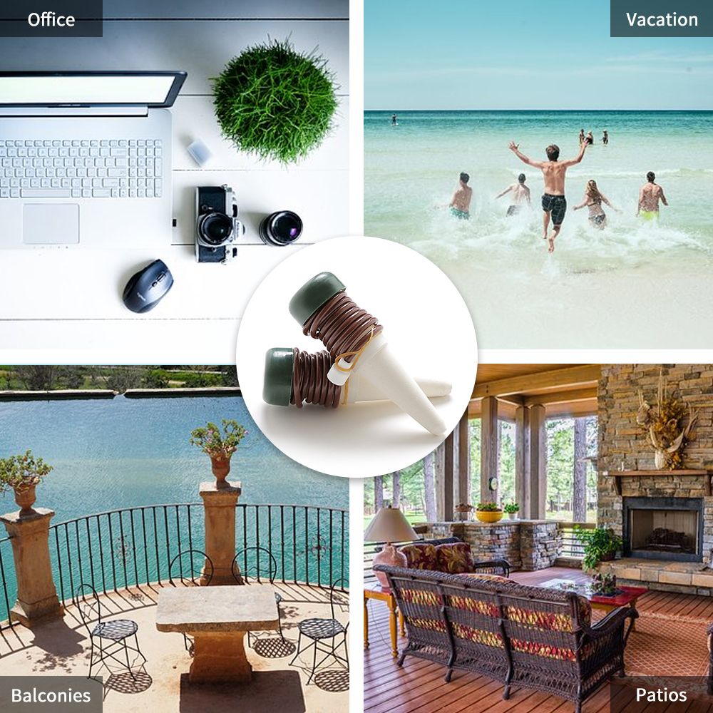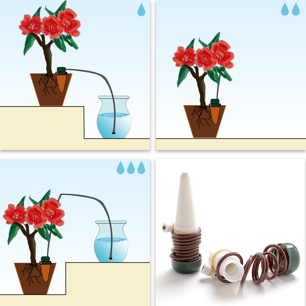 Automatic plant waterers is a simple and effective way to water your plants when you are away weeks or have no time to take care of your plants. As the soil dries, the ceramic cone delivers water gradually into the surrounding potted earth, thereby creating a vacuum within the cone which automatic draws water from the nearby container of water. Once the soil is moistened the tubes will cease flowing water.