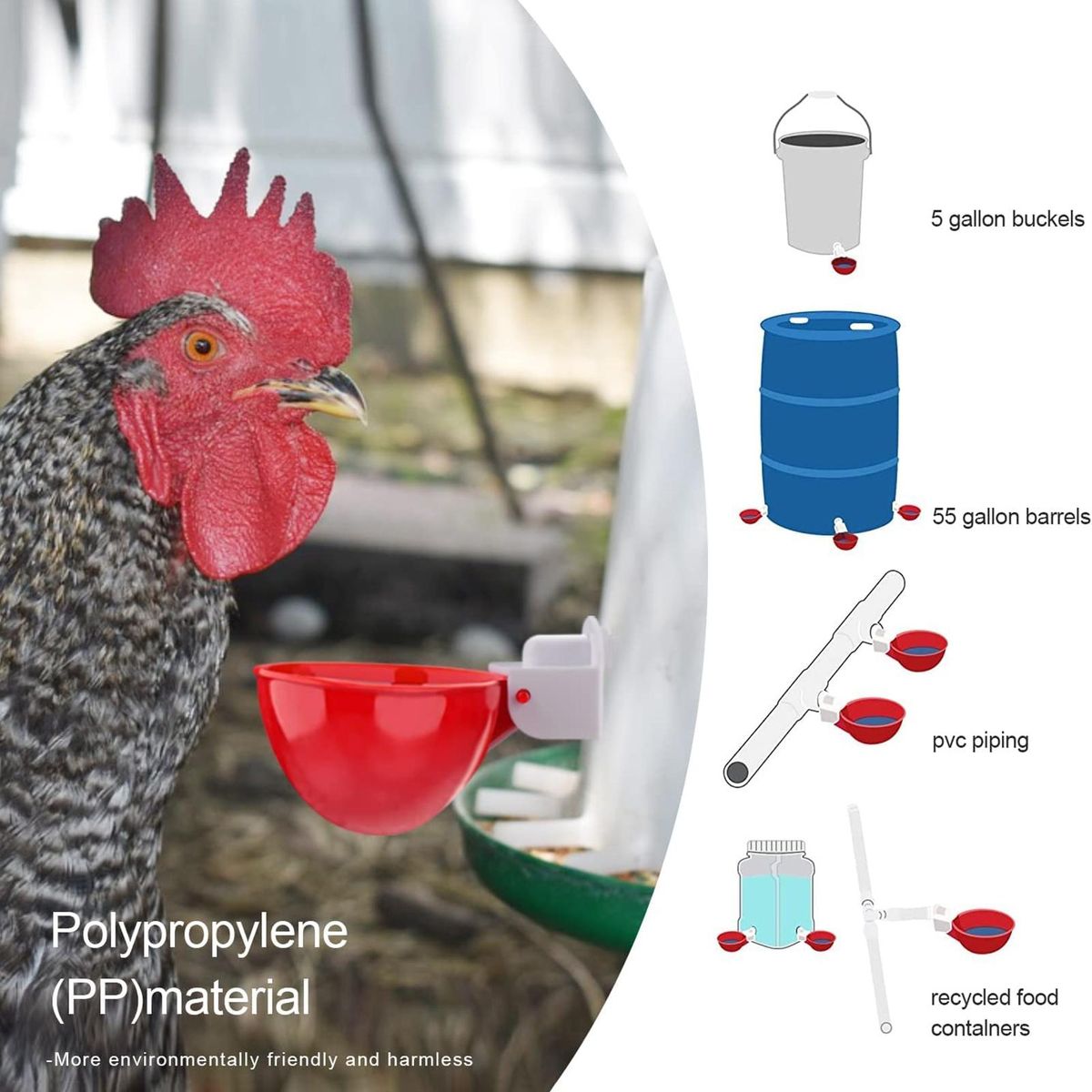 Our poultry drinking bowl, the perfect addition to your coop! our automatic chicken waterers provide a constant supply of drinking water for your flock. made of high-quality plastic materials, they are safe, bite-resistant, wear-resistant, durable, and tough. with automatic water discharge, the cups will stop filling when the water reaches the upper limit. .