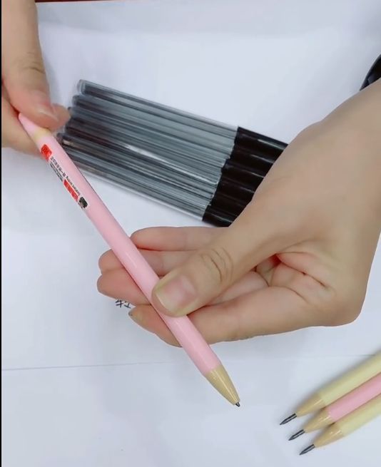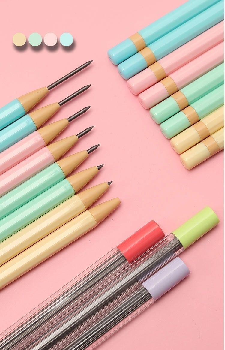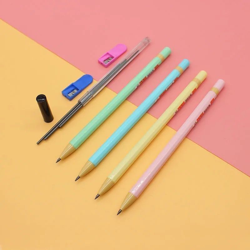 2 pencils, enclosed with 32 replacement cores, 5 erasers and 2 pencil sharpeners as free gifts