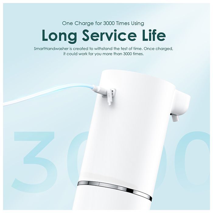 Though it's very compact and portable, but it's working life is really long. You could charge the SmartHandwasher with the attached Micro-USB cable only once, then it could work for you a long time.