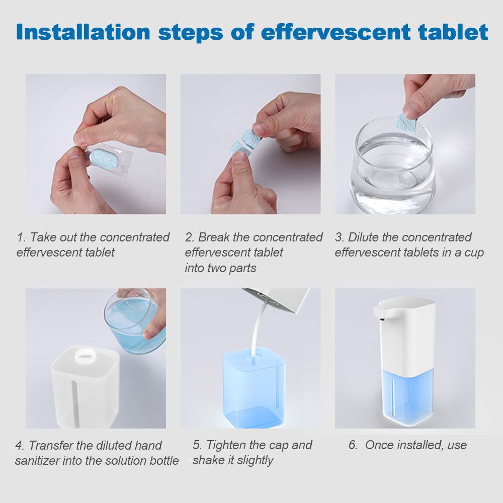 Package list: host, USB cable, effervescent tablet, instruction manual