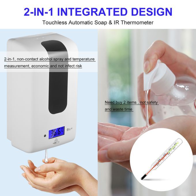 Automatic Soap Dispenser and Infrared integrate design to keep hand hygenic and test body temperature at the same time to remind and prevent high temperatuer person to reduce mutual infection. 1200ml super large spray bottle is great for public use, such as school, factory, market and office, etc.