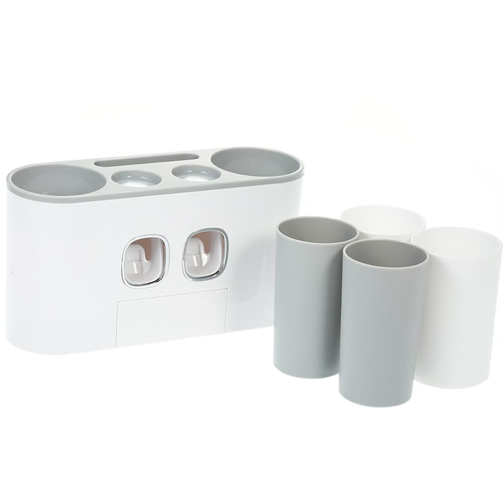 Buy automatic squeeze toothpaste set vibrato toothbrush holder squeeze toothpaste artifact toothpaste toothbrush rack Four Cups of Happy Home-Grey in Nigeria
