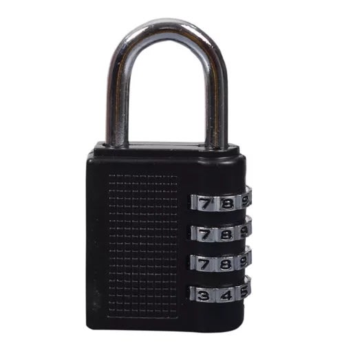 4-Digit smart combination padlock with a steel shackle, without fear of having locks cut open.Can be used for locking luggage, suitcase, tool box, locker golf bag, bags, backpack, drawer.The lock password is ressetable according to your own needsColour: mainly black. Material: durable zinc alloy and stainless steel