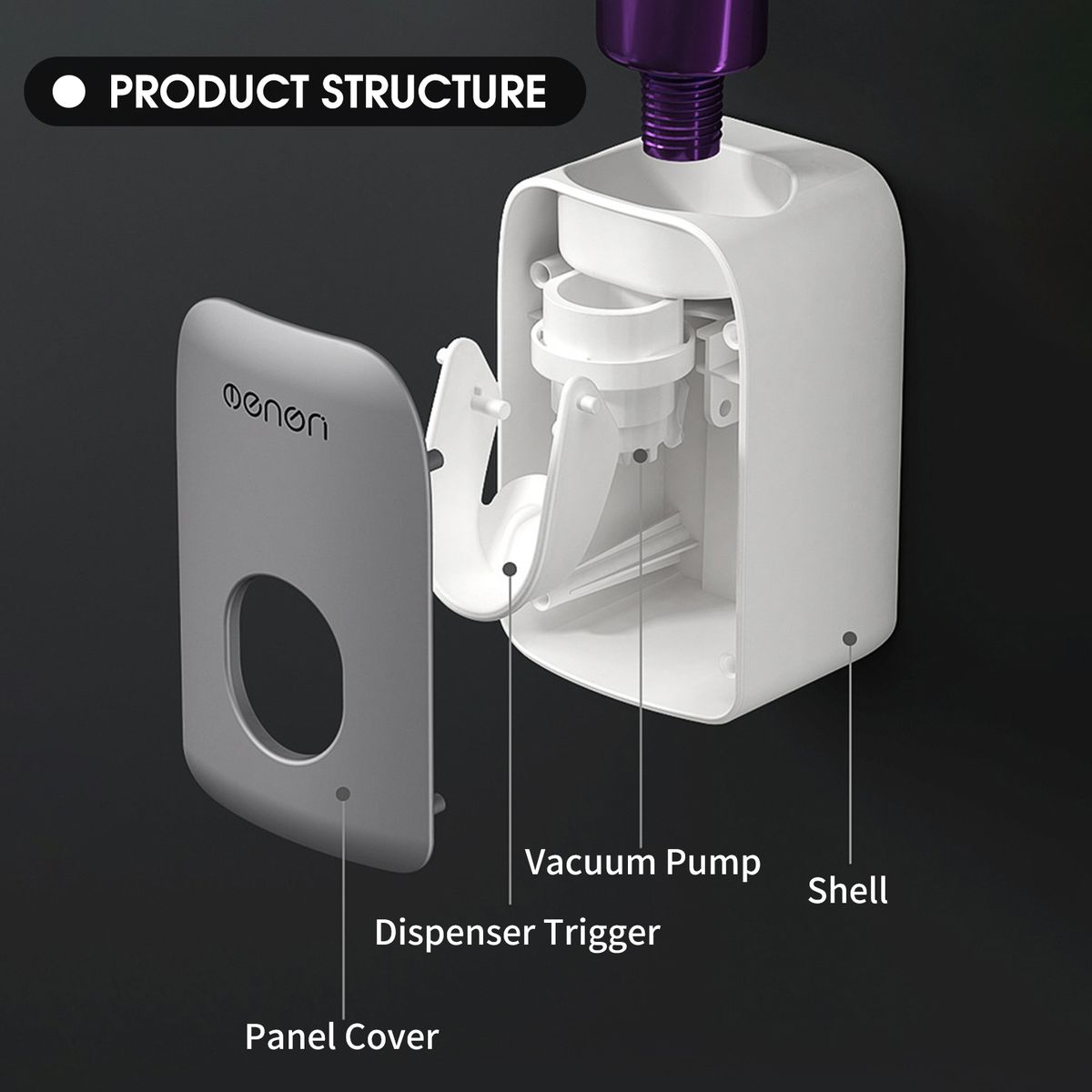 [Vacuum Technology]Automatic toothpaste dispenser adopts vacuum technology, pumps out every drop of toothpaste and avoids direct touch, stays economical and hygienic.