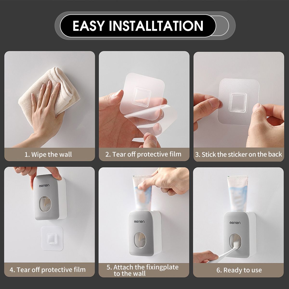 [Easy Installation]Support wall-mounted installation. The toothpaste dispenser can stick to the wall to save more space.