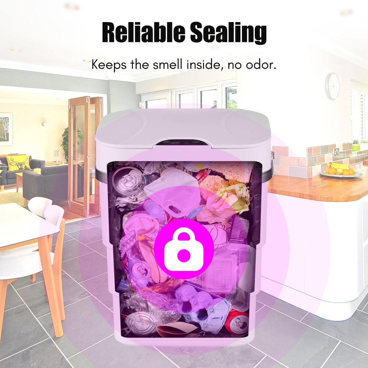 【Touchless Motion Sensor Trash Can】Built in infrared sensor, can quickly capture your action to automatically open and close the lid to realize non-contact garbage throw, easy to operate and make your life easier and smarter.