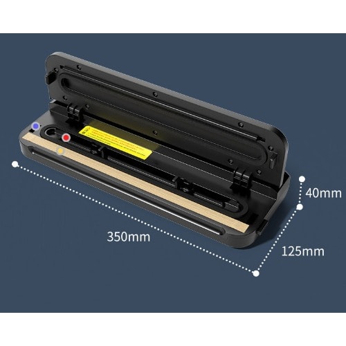 Features:Economical and Practical:Vacuum Food Sealer eliminates freezer burn, reduces spoilage and food waste, and effectively increases food shelf life, making food still fresh and flavorful.Good Healper for Cooking:Cooking and meal preparation becomes easier. Using Sous-Vide cooking method to acheive excellent results when preparing food. It also saves space of your freezer with the airtight bag packaging.Easy to Operate:Do vacuum packing and sealing with one simple press, sealing food in seconds, offering you a quick, easy and inexpensive way of preserving your food.Compact & Slim Design:Compact size and lightweight design for easy store. It can be placed on any kitchen counter top. Be careful with the heated sealing edge, not recommended for children to use.Requirements on Film / Bags:The Vacuum Sealer fits up to 27cm width vacuum sealer bags and rolls with dots, knobs or grooves on one side and can preserve all types of food.Note:1. When placing the bag in the vacuum sealer, the end of the film must be positioned in front of the rear limitation webs and the lateral limitation webs (just inside the bottom sealing ring).2. Please keep children and animals away from the electric device at all time.3. The welding wire becomes very hot during operation. Do not touch it.Specifications:Two Modes: Seal Only, Vacuum & SealSealing Width: 27cmVacuum Degree: -60KpaRated Voltage Power Supply: AC 100V-240V 50/60HzPower: 90WColor: BlackItem Size: 36.8 * 7.7 * 7.5cm / 14.48 * 3.03 * 2.95inItem Weight: 420g / 14.80ozPackage Size: 37.3 * 9.9 * 8.1cm / 14.68 * 3.89 * 3.18in