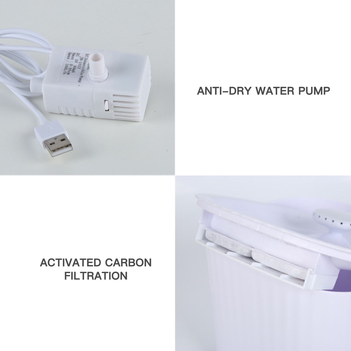 Double activated carbon circulating filtration, help your pets drink clean water, ensuring their health.