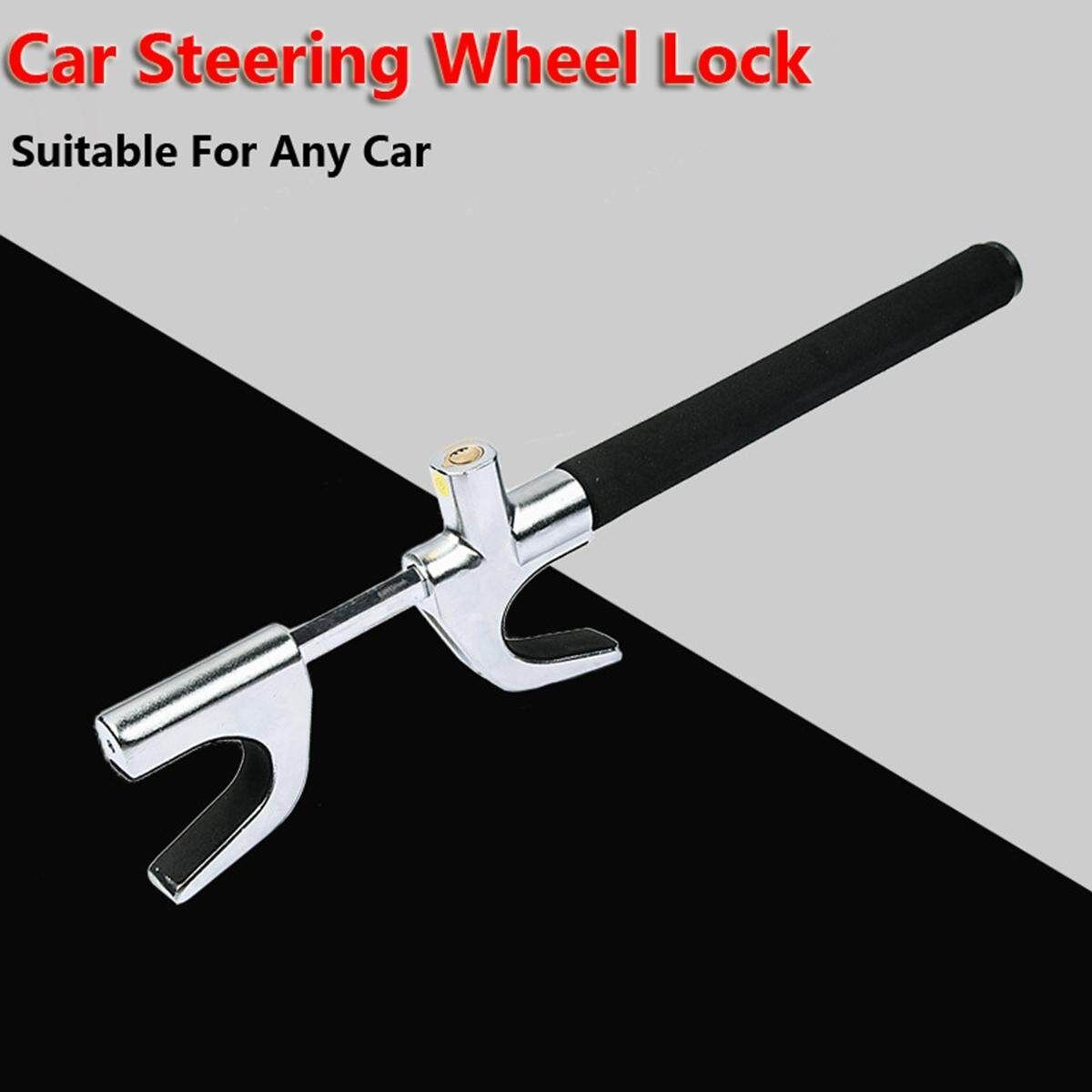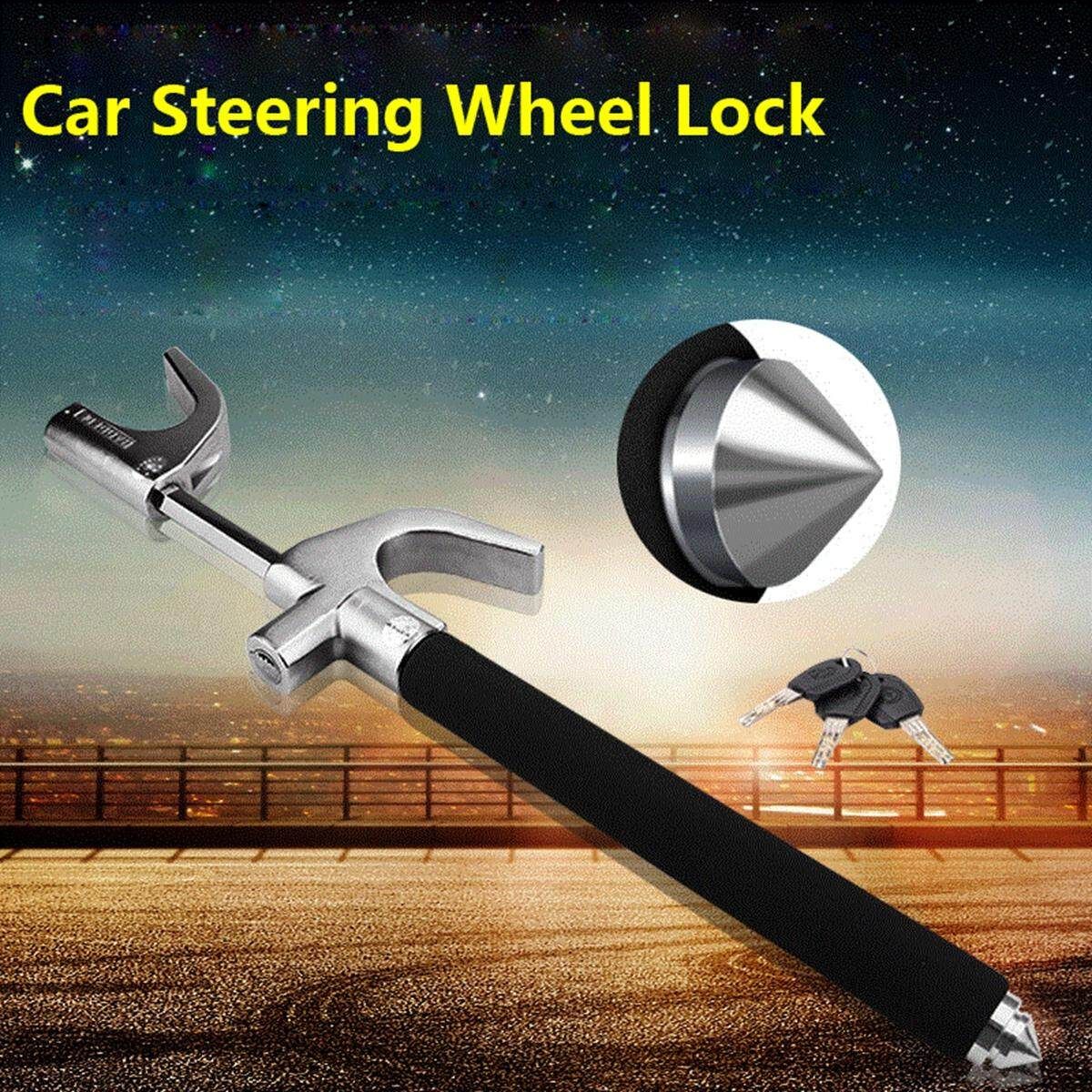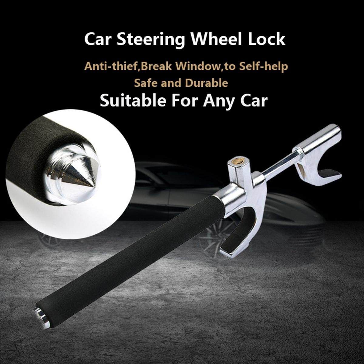 The Steering Wheek Lock prevents somebody attempting theft from driving your vehicle away, even if they are able to through the door or window. Steering Wheel Lock locks with one pull, resisting sawing, prying, hammering and freon attacks, which is tougher for thieves to defeat. The precise double spring crescent lock sub-type encoding key is specially designed to prevent professional thieves and mutual open rate. The safety hammer design on the tail helps in any emergency. This anti-theft lock is also ideal for self-protection.