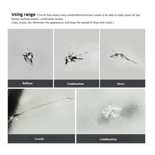 The kit that meets every windshield technician's requirements should be able to repair all bull eye breaks, star breaks, combination breaks, chips and cracks. This kit helps to minimize the appearance of the windshield damage and stops the spread of chips and cracks.
