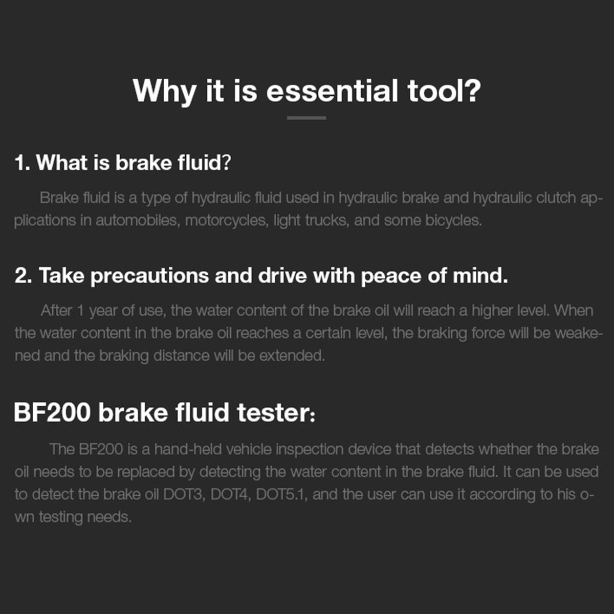 Sound Alarm:When the moisture content of the brake fluid is detected to exceed the standard, alarm will be sounded to replace the brake fluid.