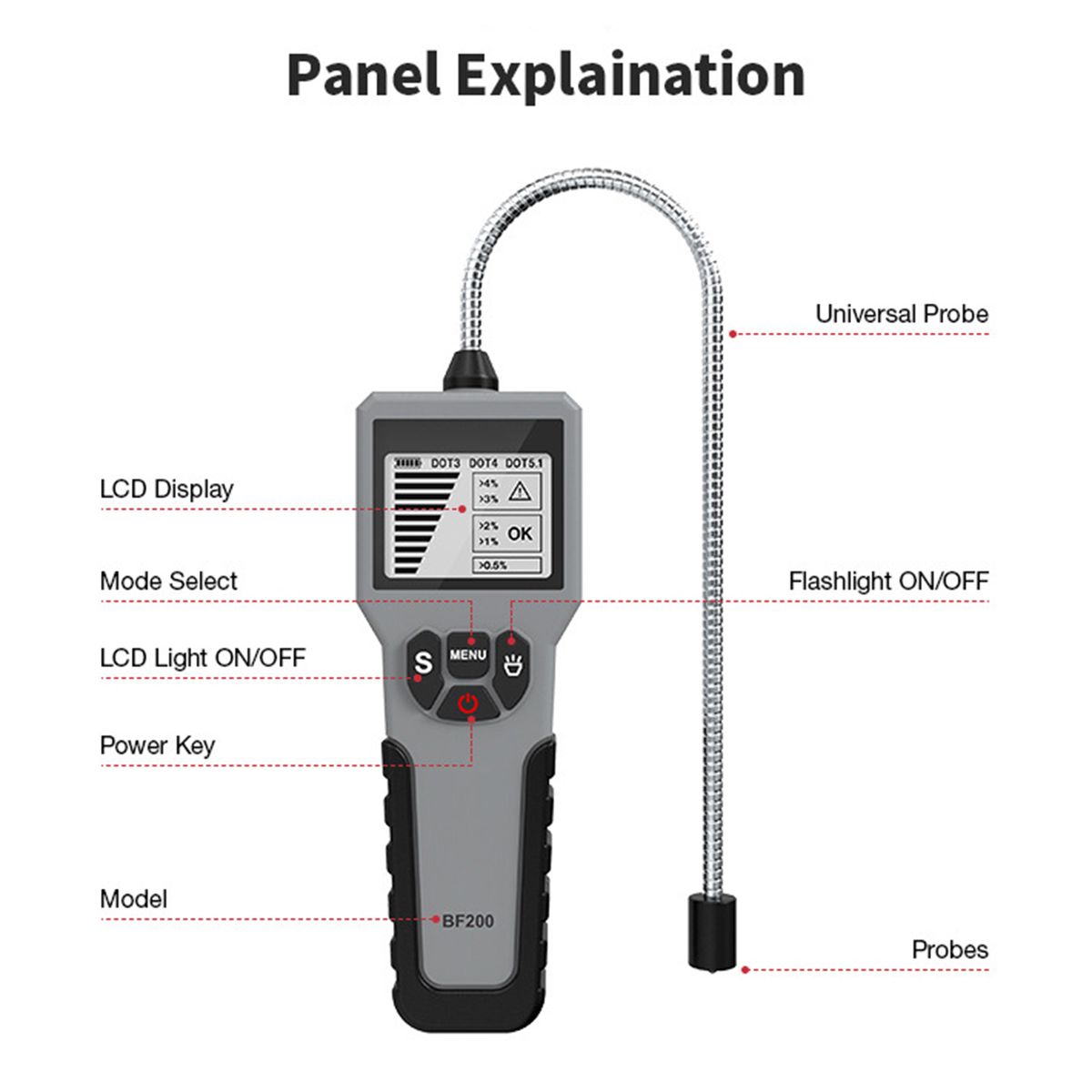 Support multiple types of brake fluid in one tool:DOT3, DOT4, DOT5.1.