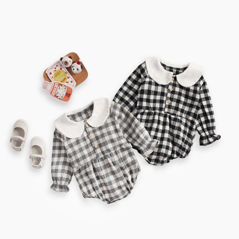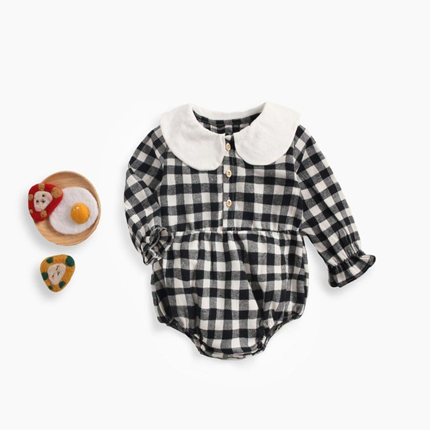 Buy Autumn And Winter Baby Long Sleeves Triangle Onesies Plaid Baby Jumpsuit-Bla K & White-0-6月 in Nigeria