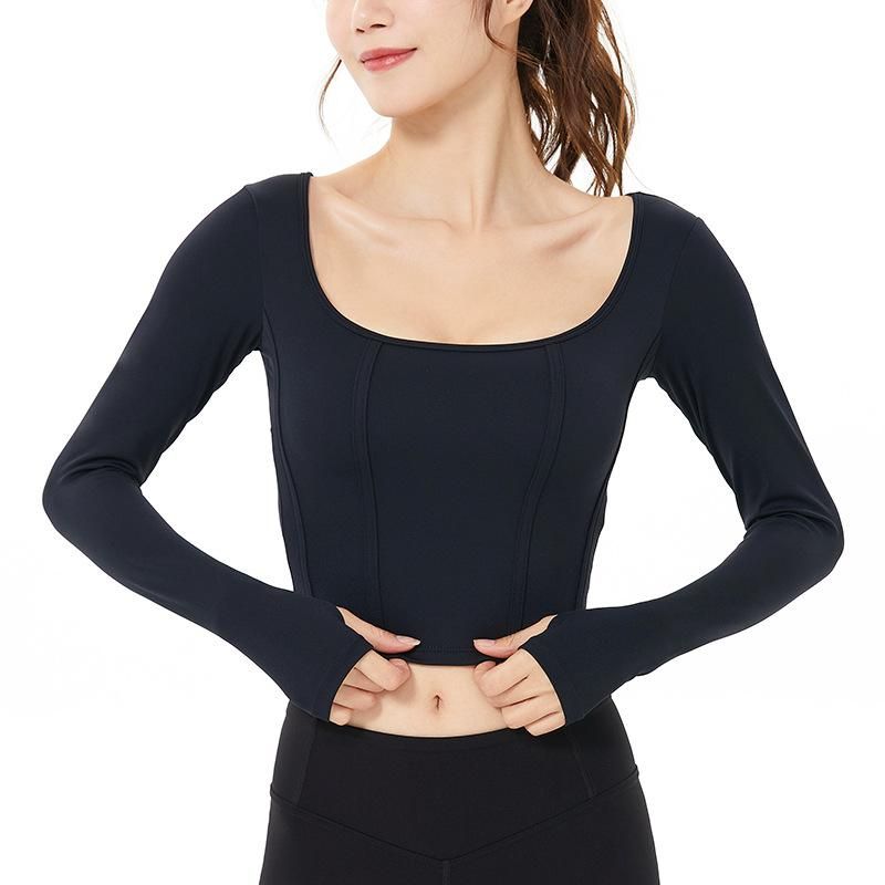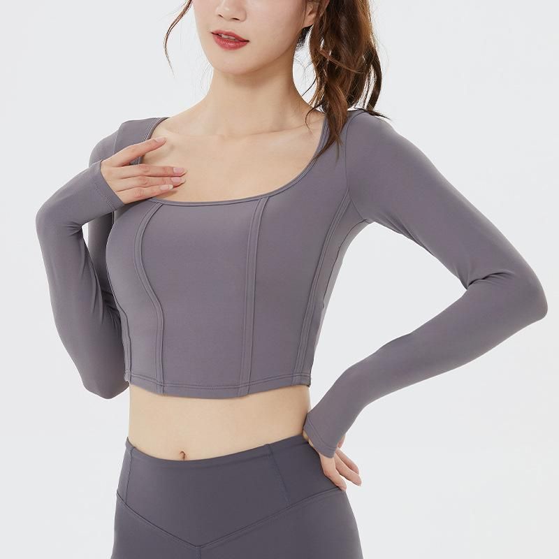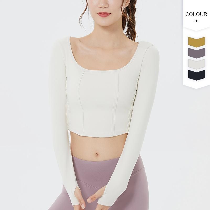 Buy Autumn and Winter New Yoga Suit Long Sleeve Nude Fit Fitness Suit Running Sports Square Neck Yoga in Nigeria
