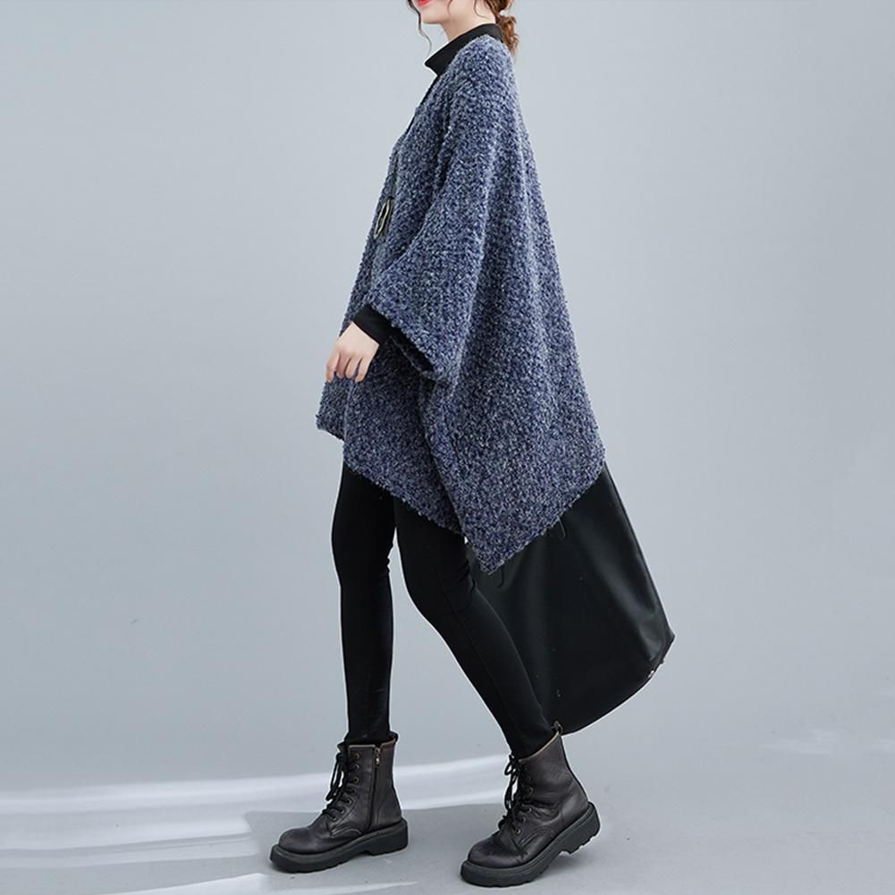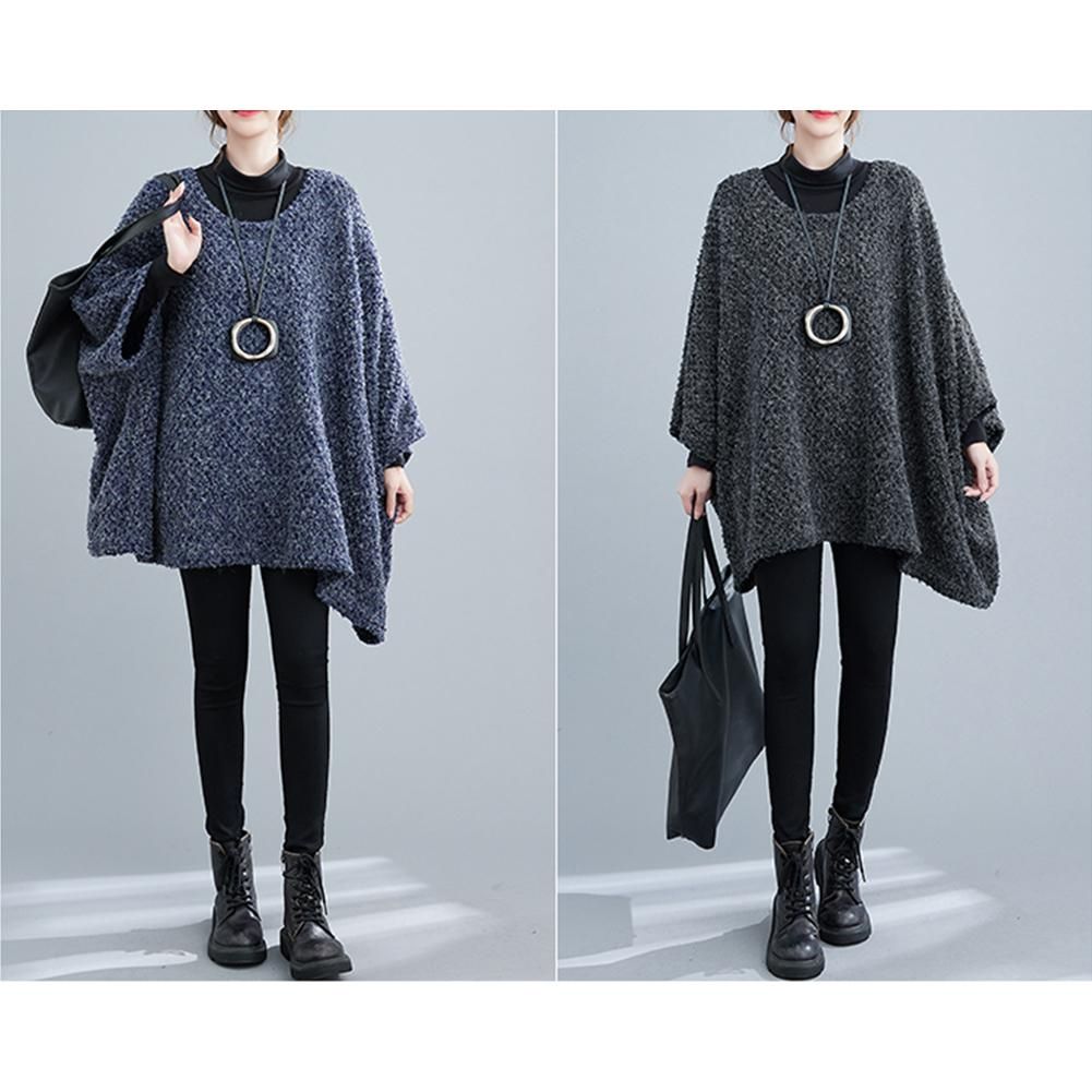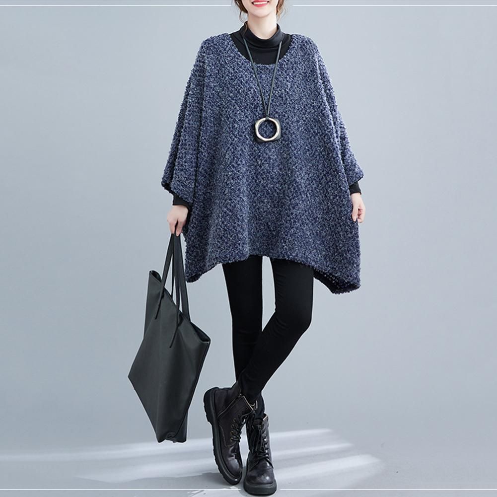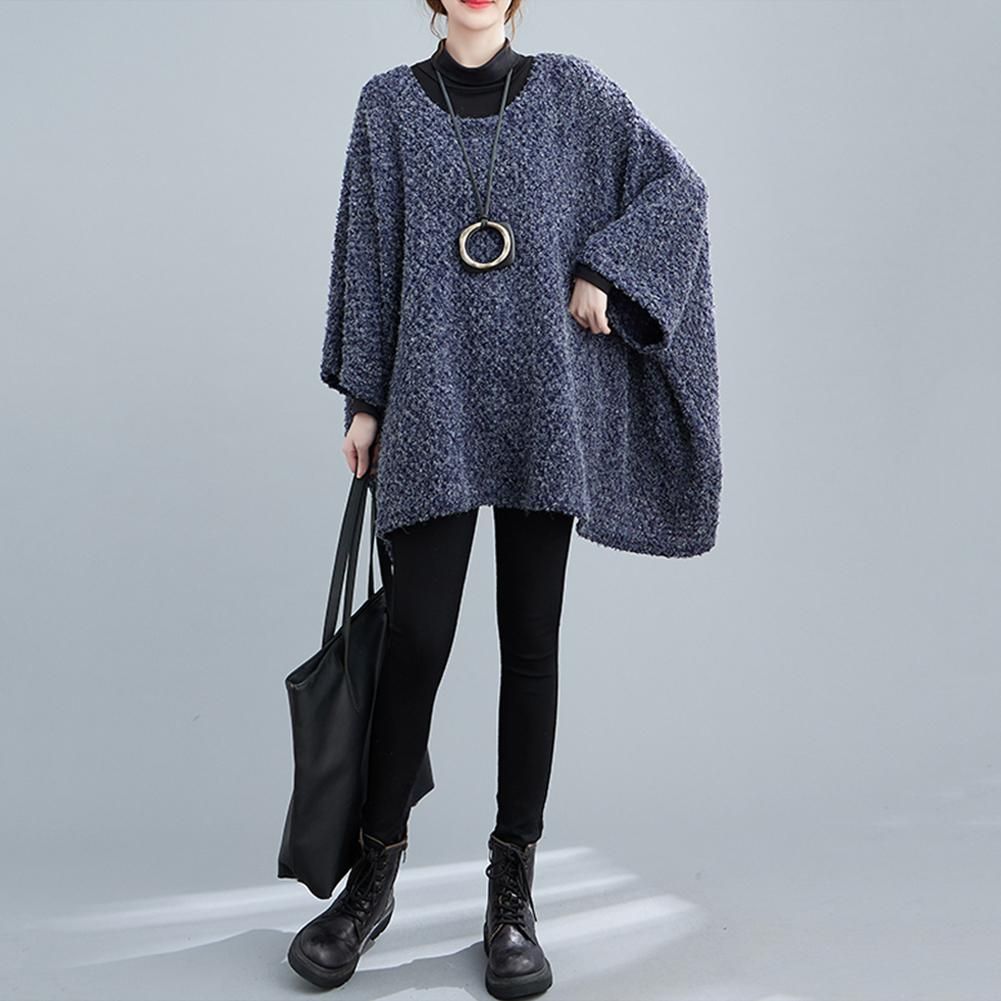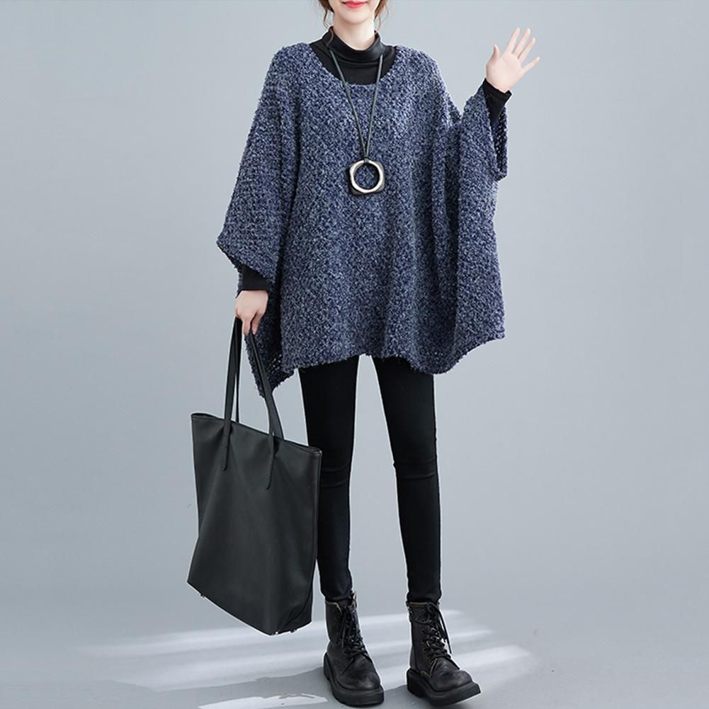 Buy Autumn Casual Women Long Solid Bat-wing Sleeve Knit Sweater Loose O-Neck Full Sleeve Lightweight Pullover Tops Blue One Size in Nigeria