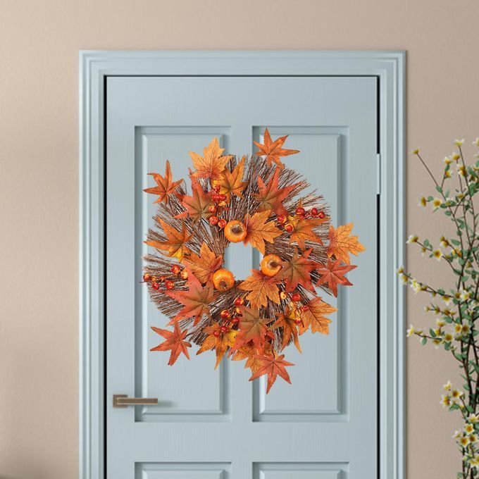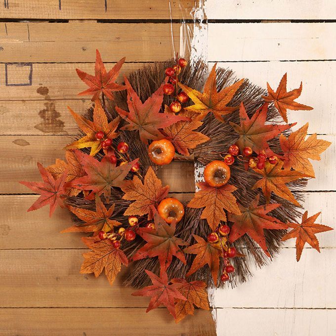 Please allow slightly measuring deviation due to manual measurement.fall wreaths;fall wreaths front door outside decorations decor;Autumn Maple Leaf Harvest Thanksgiving Wreath;halloween party decoration supplies pumpkin;pine cone berry colorful wreaths garlands;outdoor flowers festival accessories